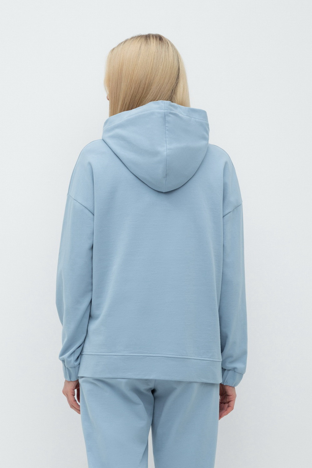 Теплая толстовка с капюшоном, карманом кенгуру и спущенным плечом из мягкого футера трехнитки. Уютный капюшон с подкладом из супрема. В боковых швах разрезы