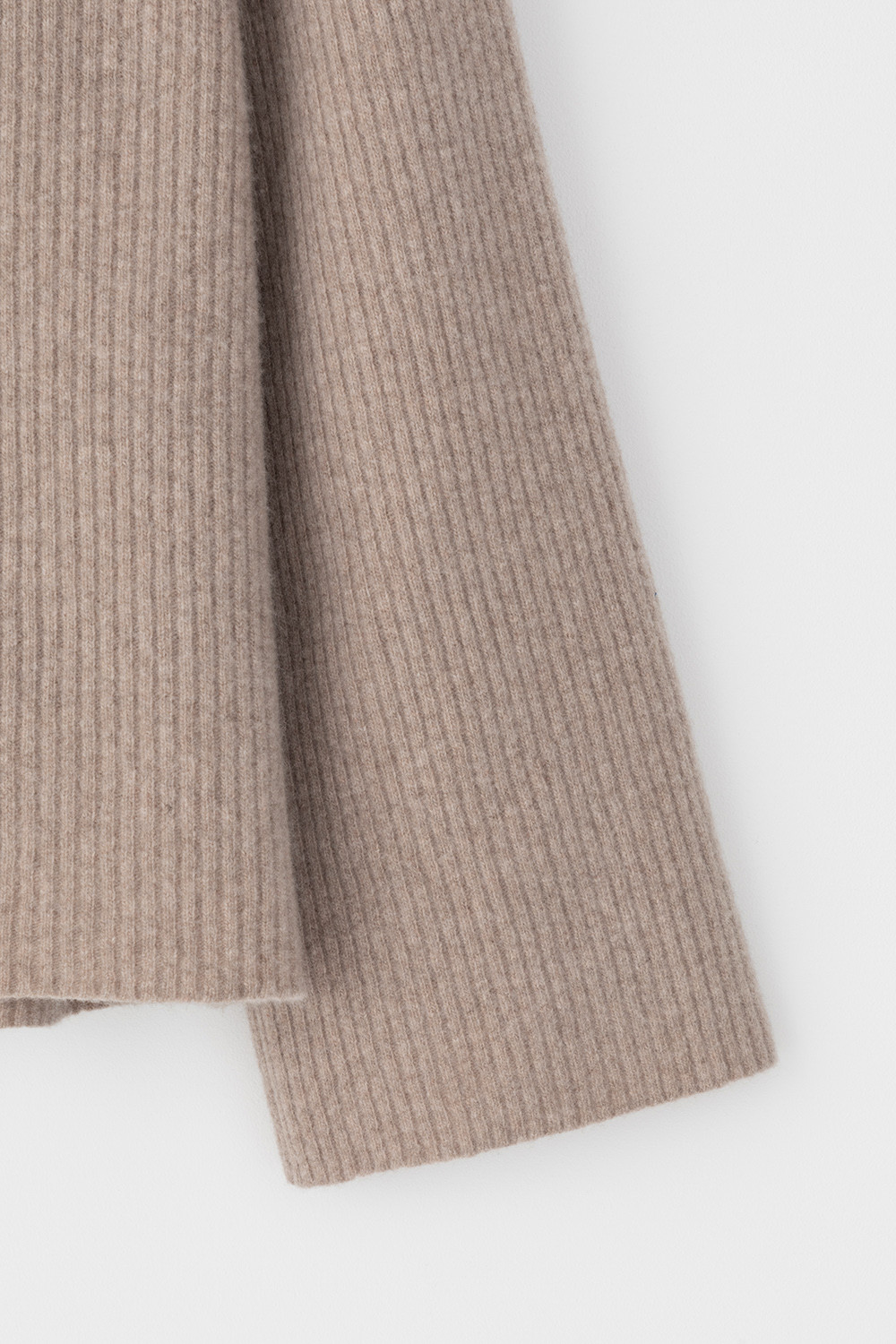 Джемпер из премиальной итальянской шерсти с рукавами-реглан в тонкий рубчик, рукава связаны ластиком 2*2. Средняя плотность вязания и пластичная фактура сохраняют форму изделия.