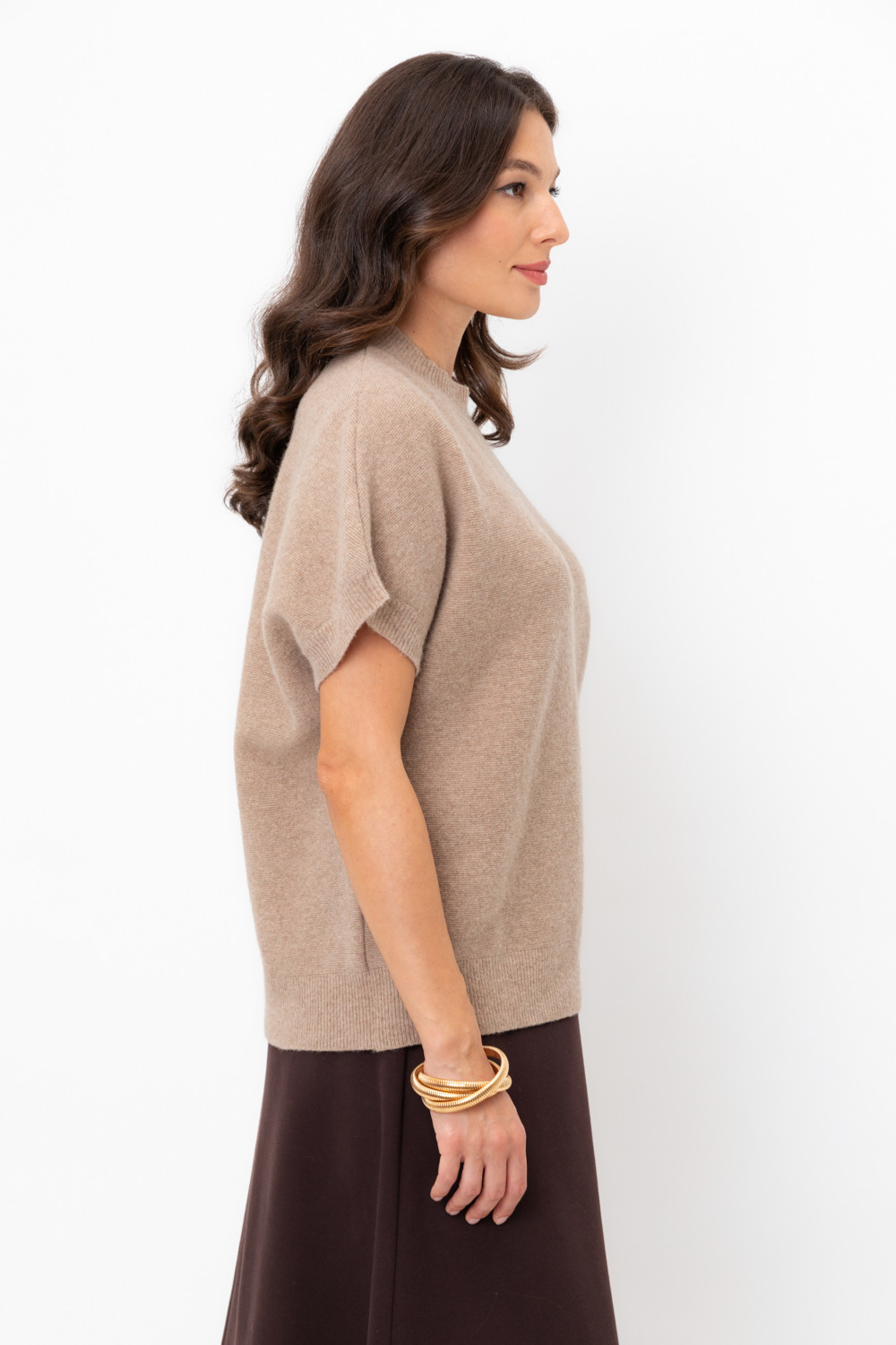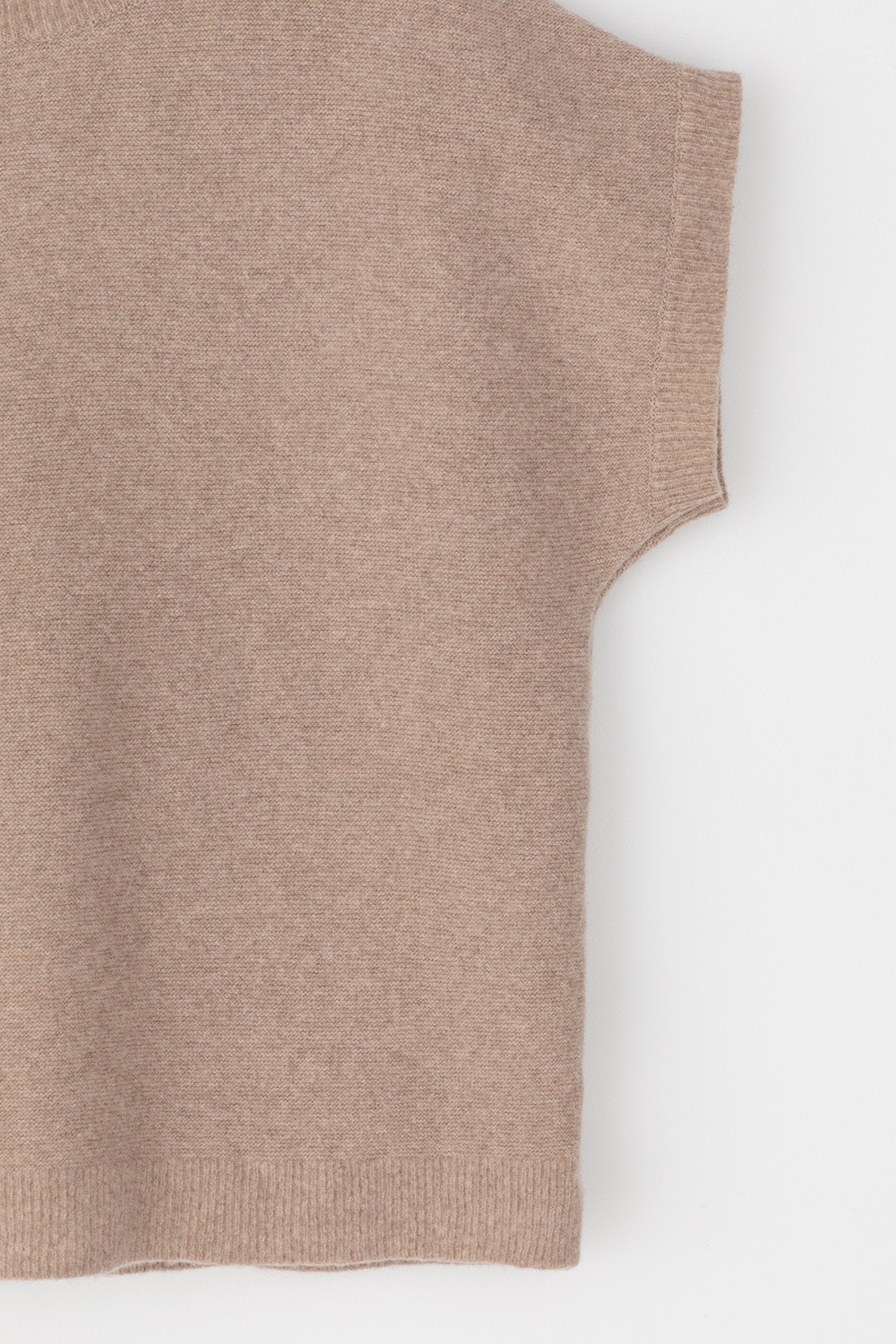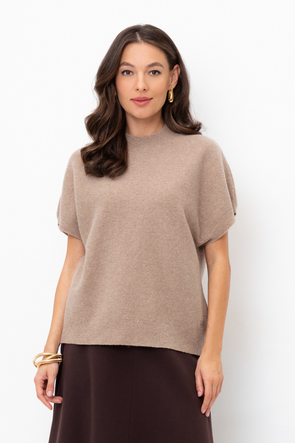 Уютный вязаный джемпер с короткими рукавами из шерсти. Комфортная посадка и цельнокроенные рукава придают изделию объем.