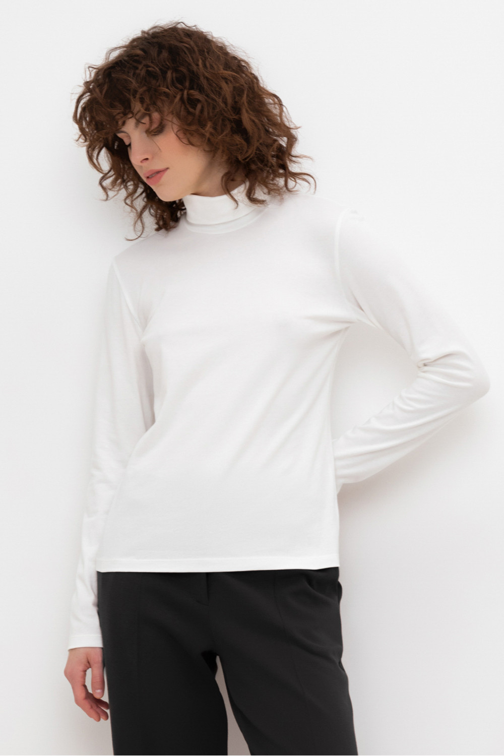 Водолазка базовая с высоким воротником-стойкой и длинными рукавами. Мягкий материал изделия приятен к телу и хорошо тянется. Приталенный силуэт плавно подчёркивает линии тела. Идеально подходит для повседневных и деловых образов.