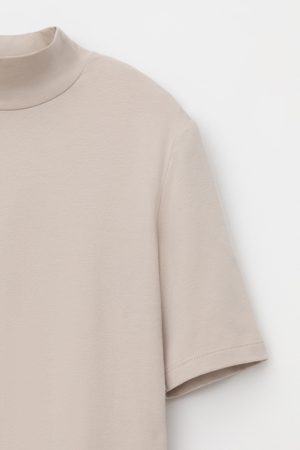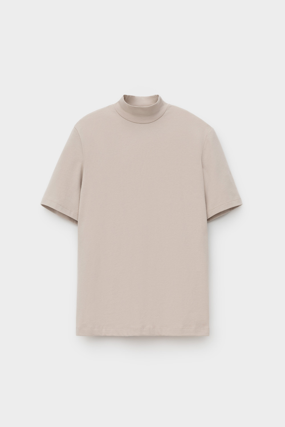 Базовый джемпер с короткими рукавами и воротником-стойкой из плотного однотонного трикотажа супрем с добавлением спандекса.