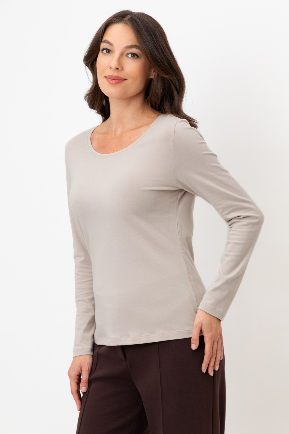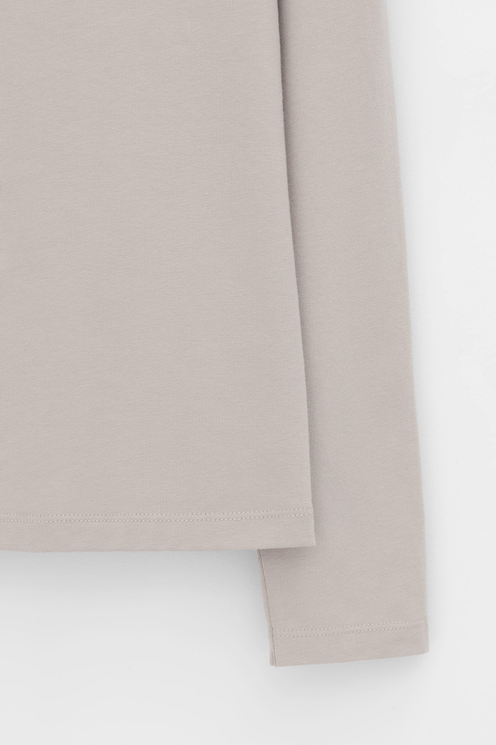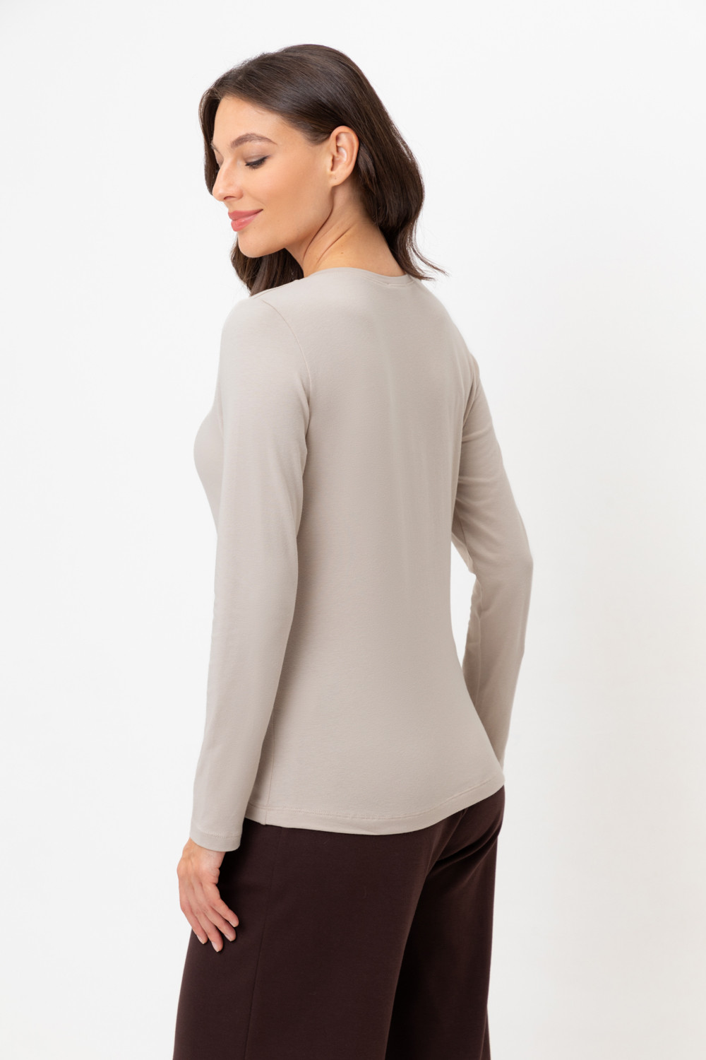 Базовый лонгслив из плотного однотонного трикотажа супрем с добавлением спандекса.