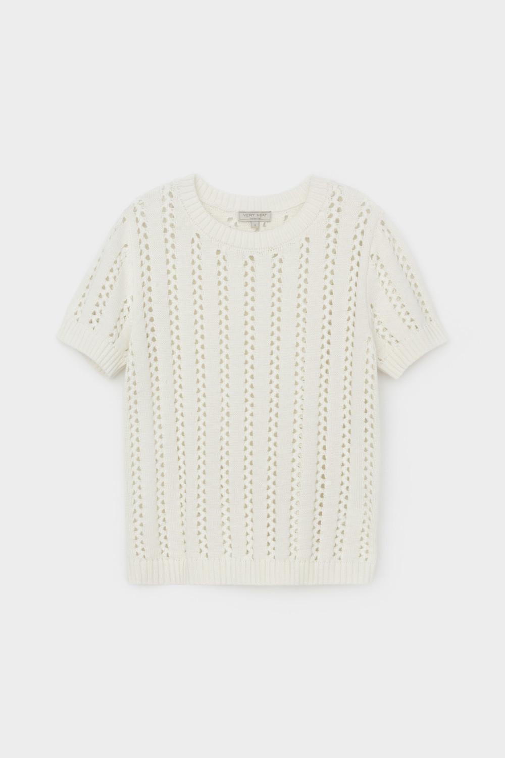 Джемпер из итальянской хлопковой пряжи выполнен ажурной, воздушной вязкой. Молочный цвет и фактура делают его универсальным для различных образов.