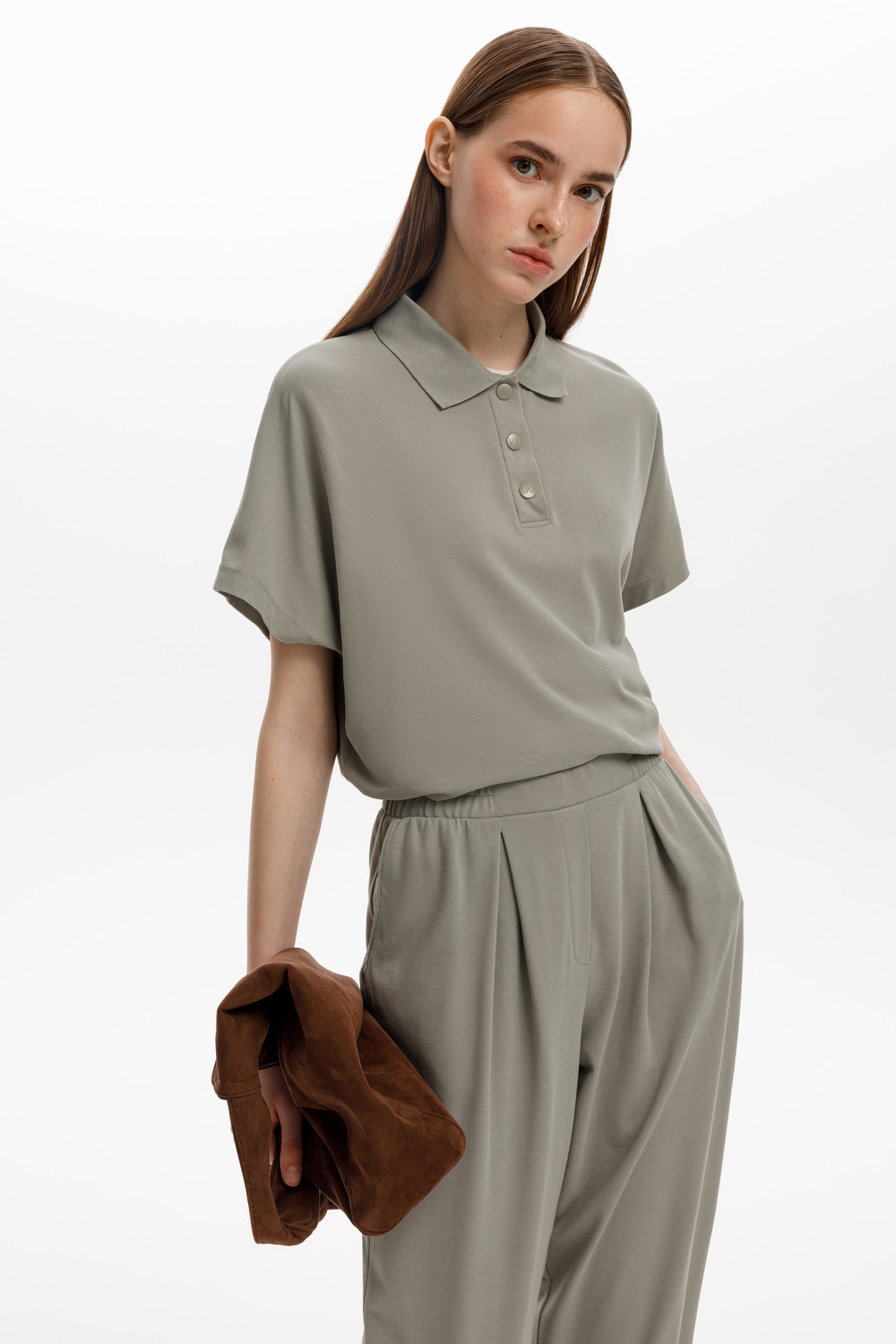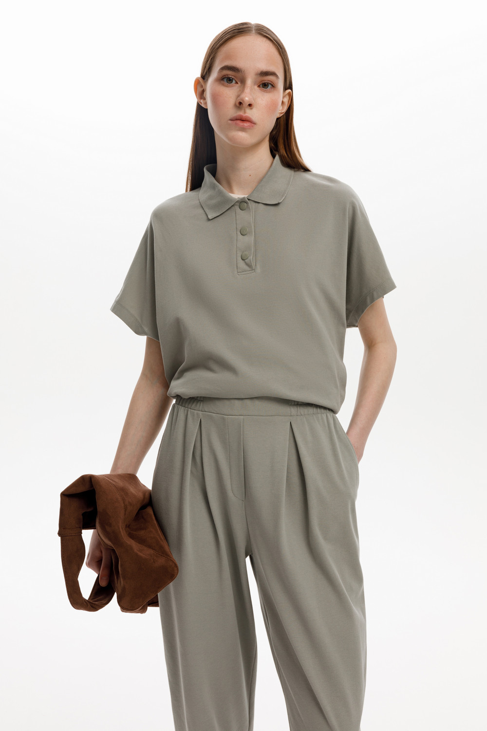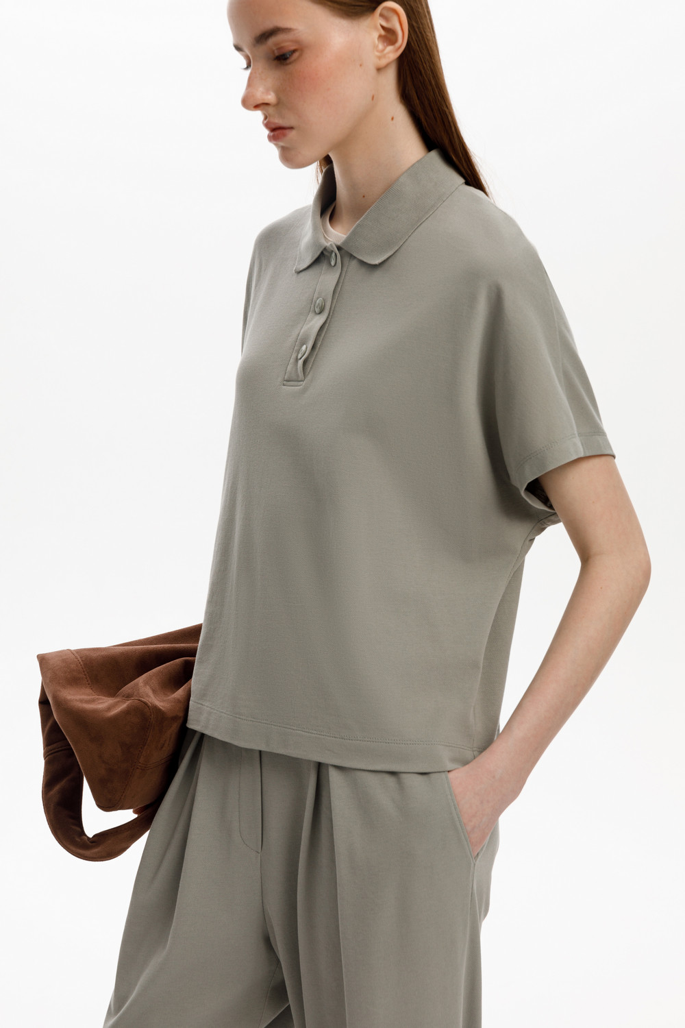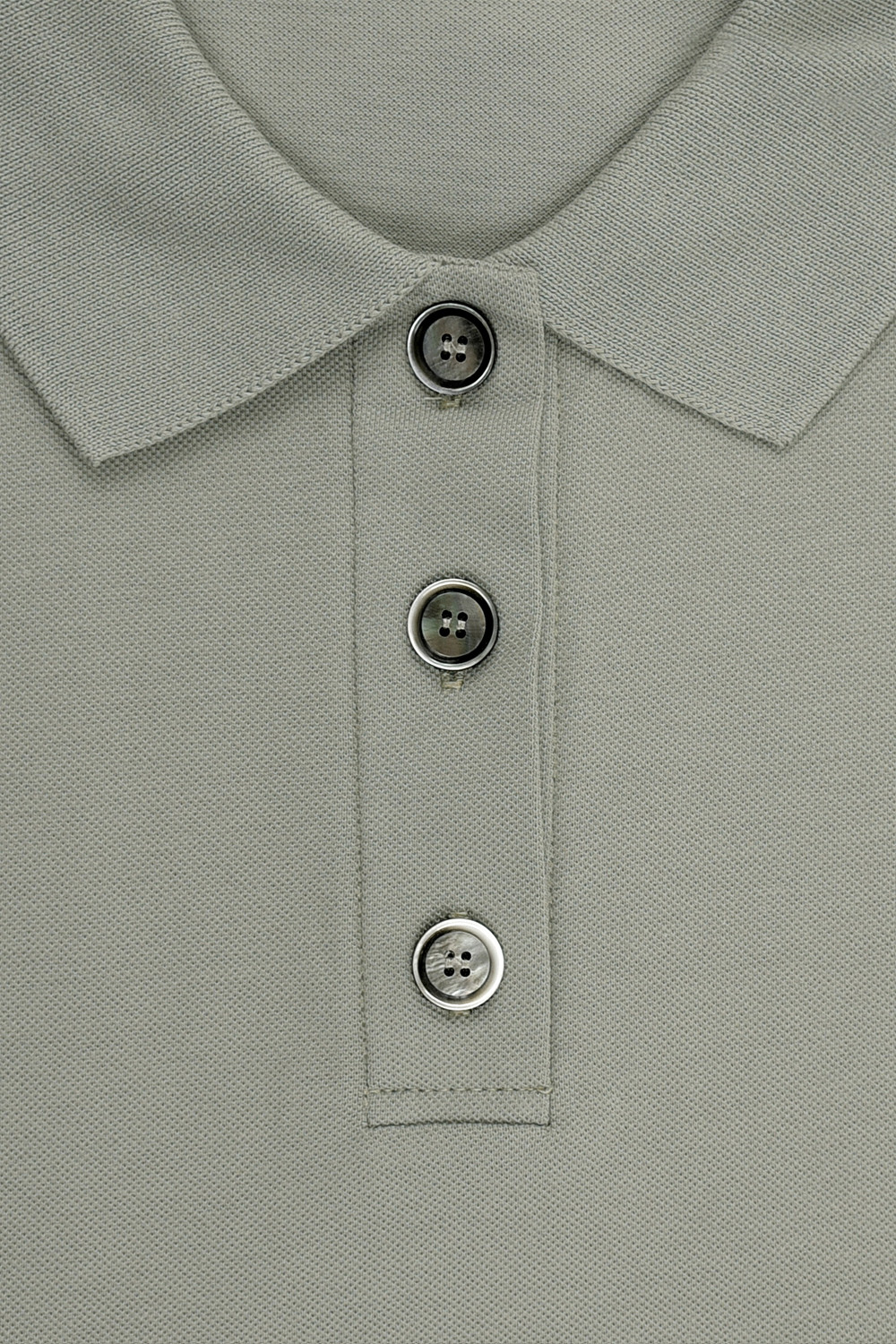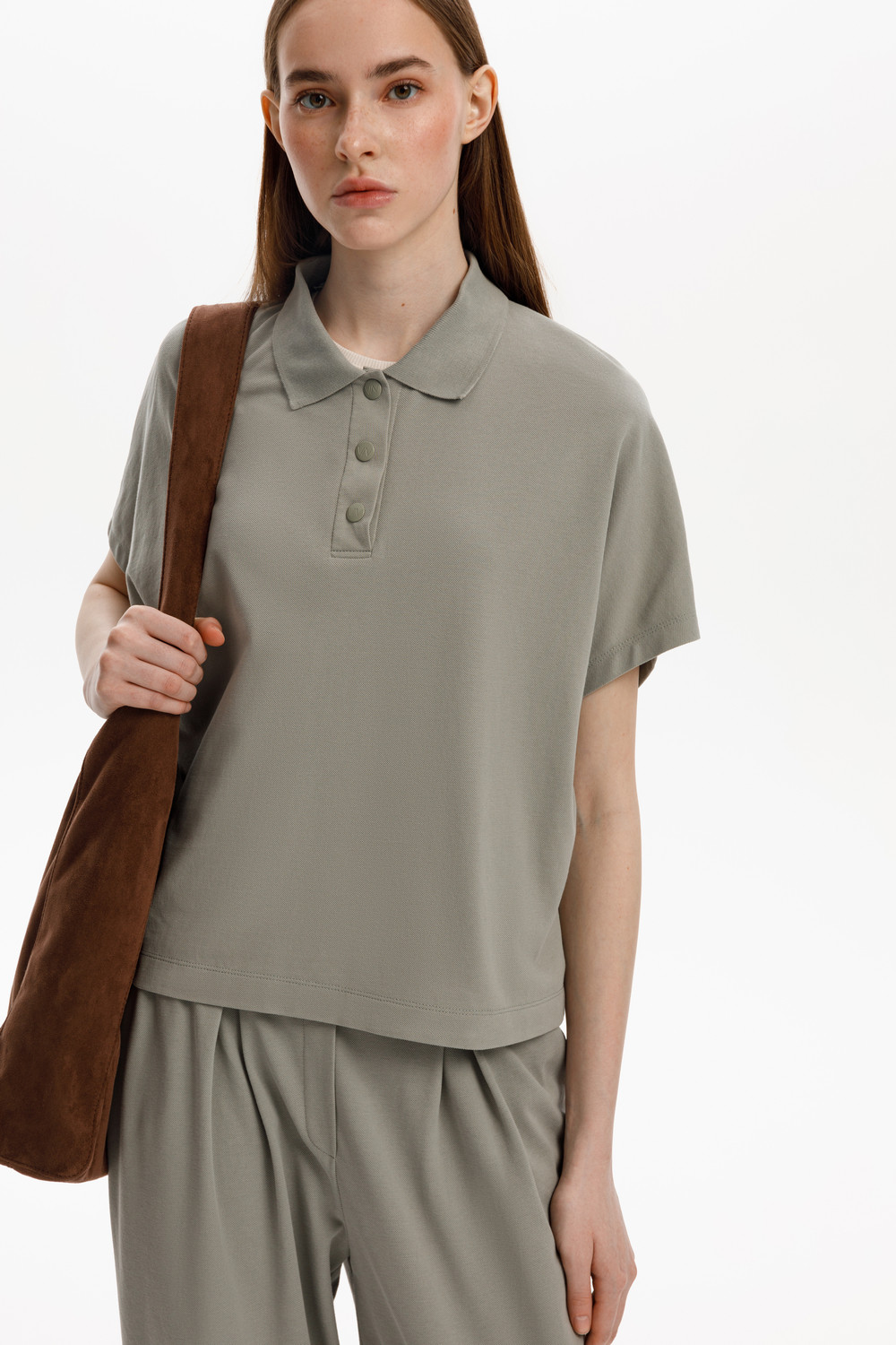 Текстурная футболка-поло из 100% хлопка в переплетении пике. Свободные спущенные рукава придают изделию умеренный обьем. Классический вязаный воротник и планка с пуговицами являются незаменимым элементом в дизайне поло.