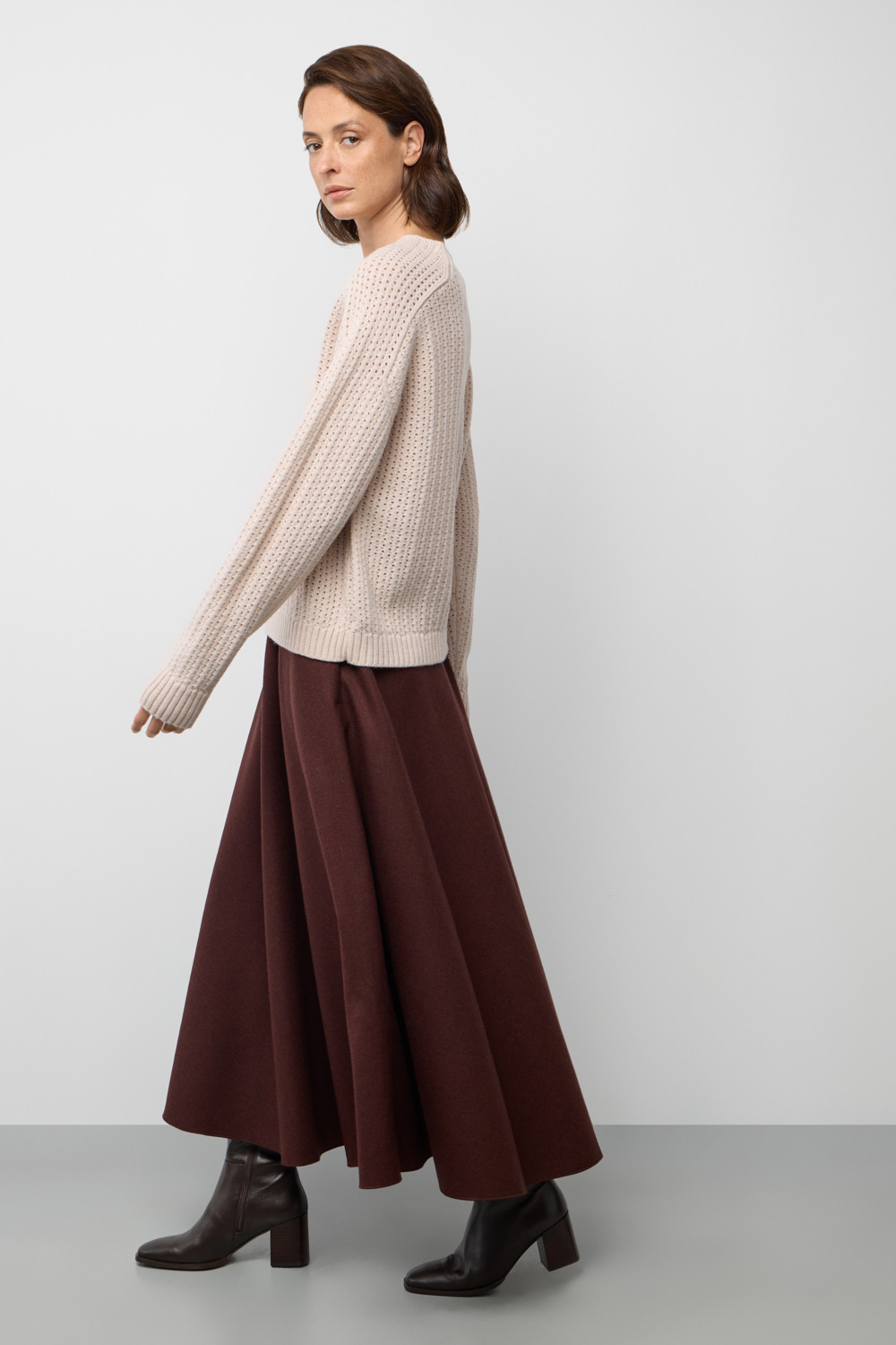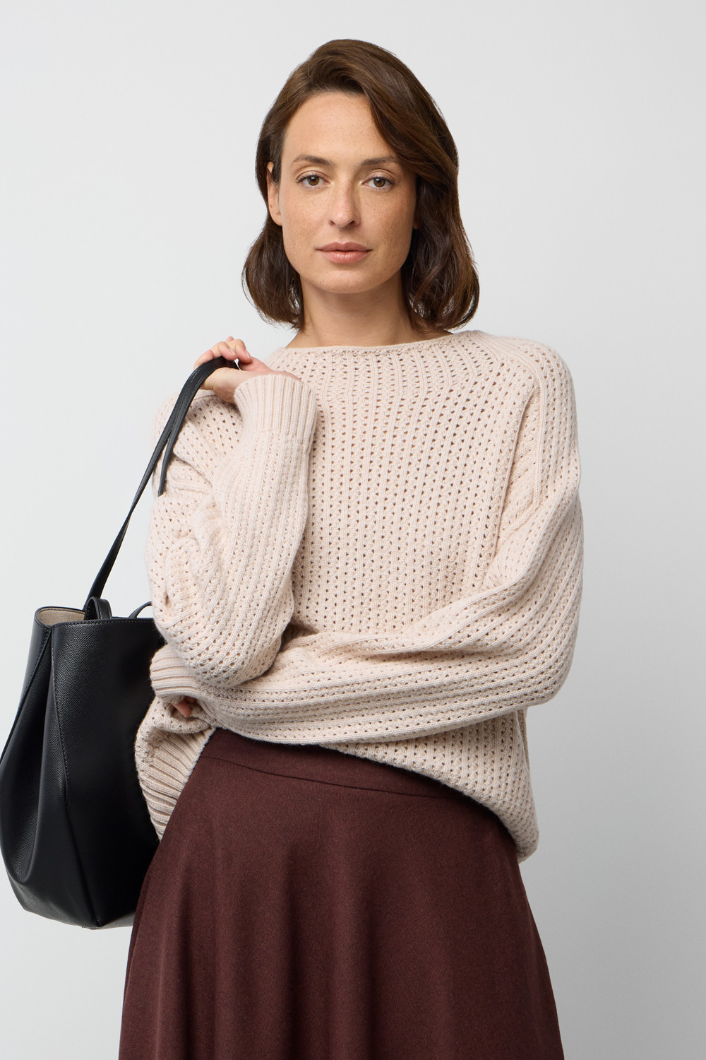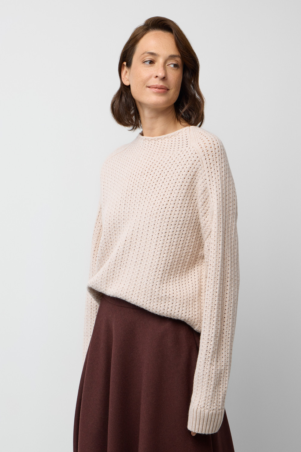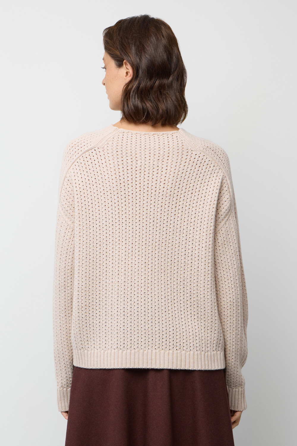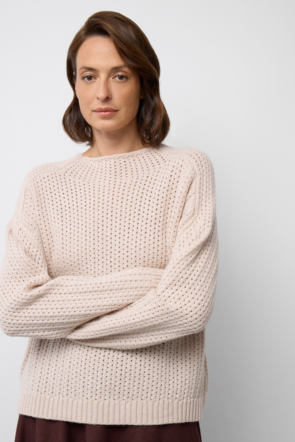 Джемпер из ажурной вязки, обладающий мягкой текстурой, создан из высококачественной пряжи. Особая комбинация шерсти и акрила создает атмосферу комфорта, а также обеспечивает приятное прилегание к телу. Состав является гипоаллергенным и способствует отличному сохранению формы изделия.