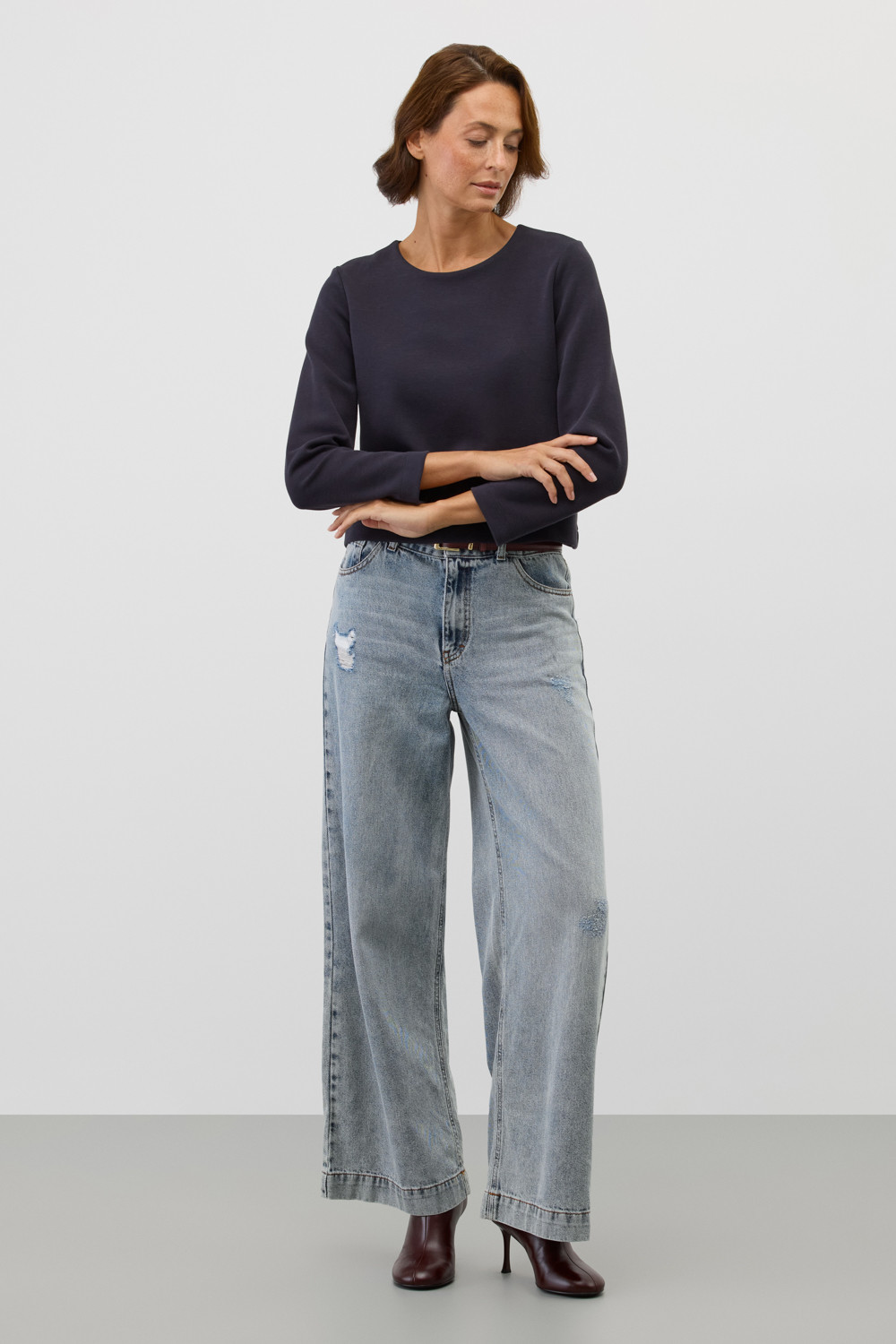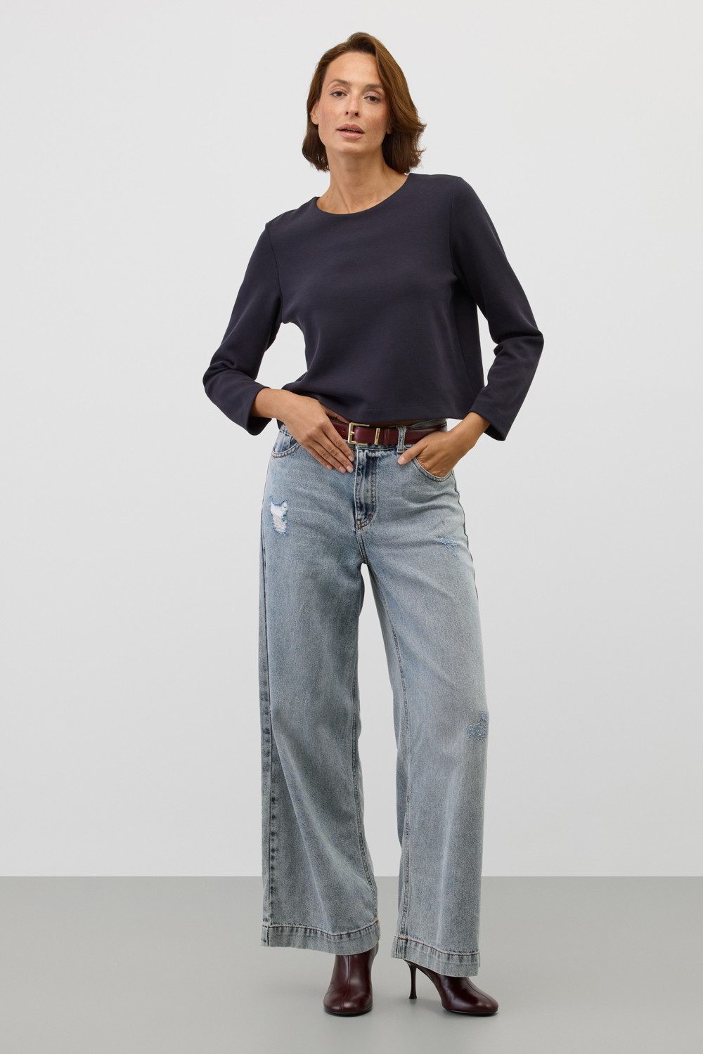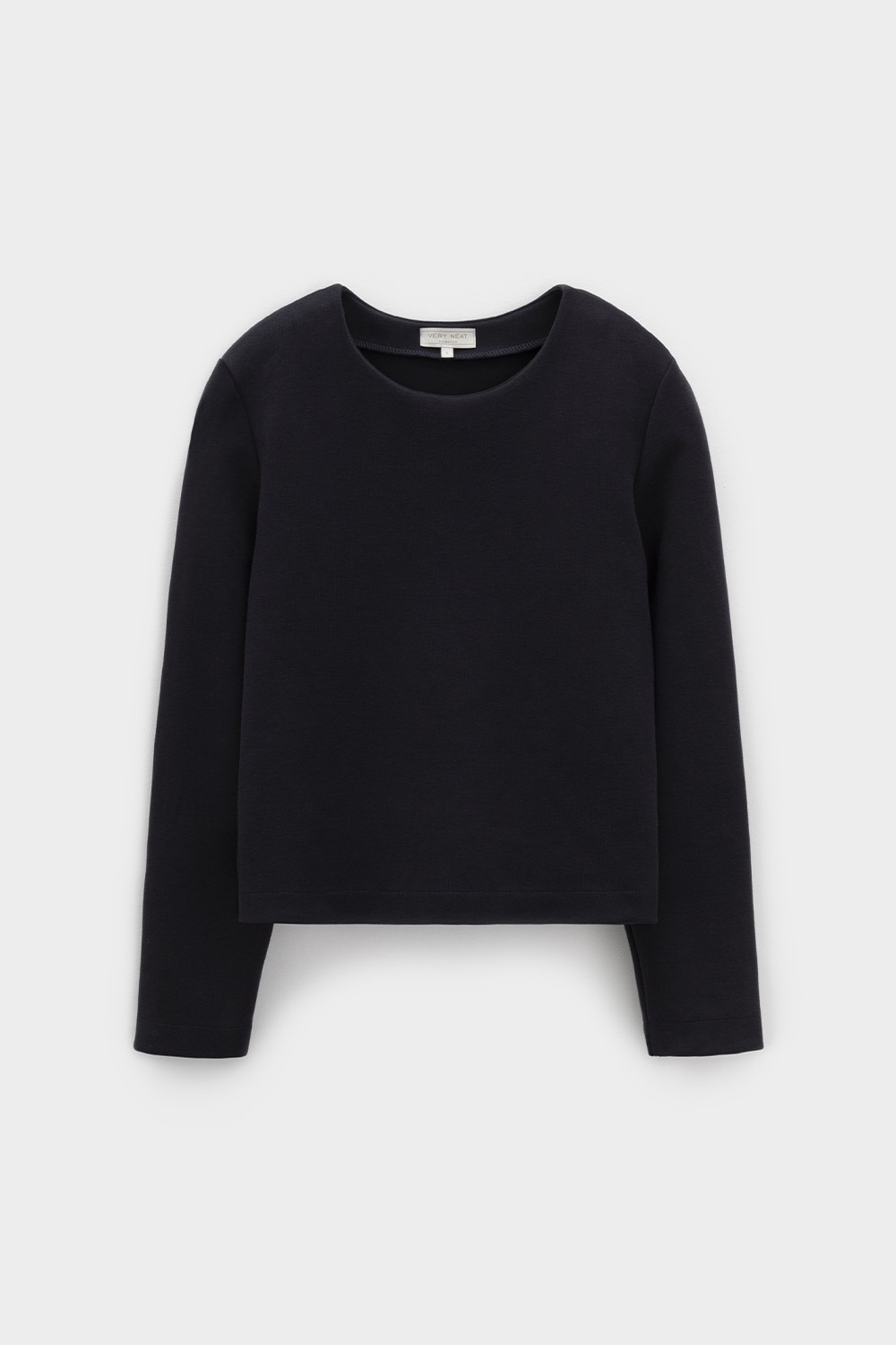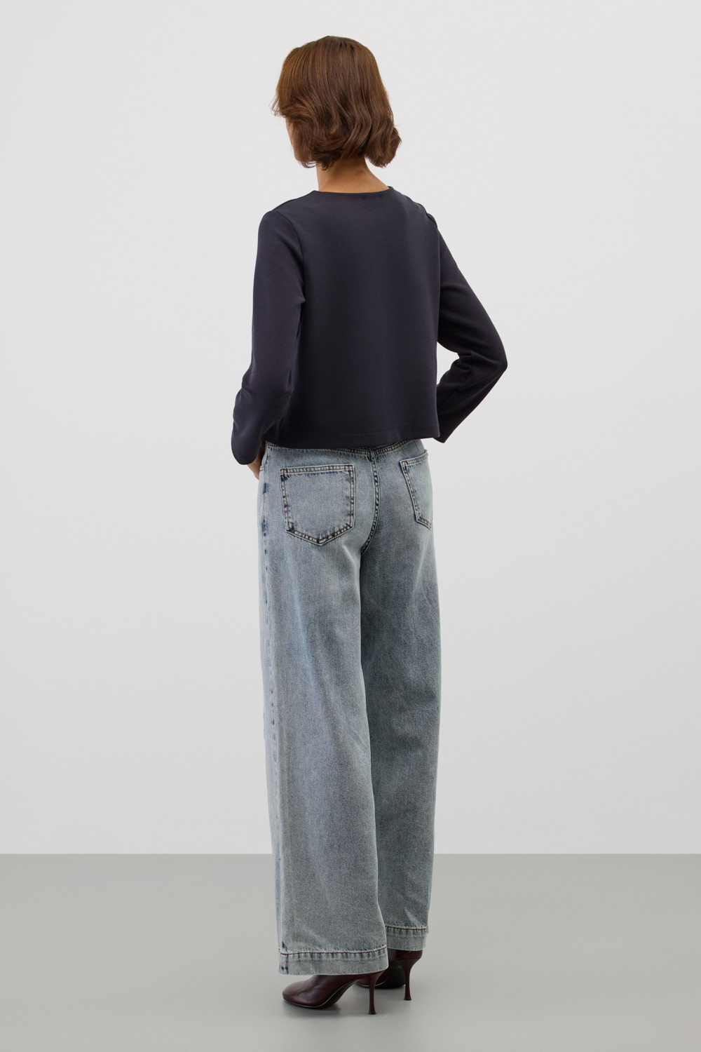 Укороченный лонгслив изготовлен из особого сочетания хлопка и полиэстера, что обеспечивает изделию мягкость, хорошую воздухопроницаемость и высокую прочность. Благодаря инновационному двойному плетению изделие отлично держит форму. Обработка ткани с использованием силикона добавляет ей легкости и дает приятную на ощупь шелковистую текстуру.