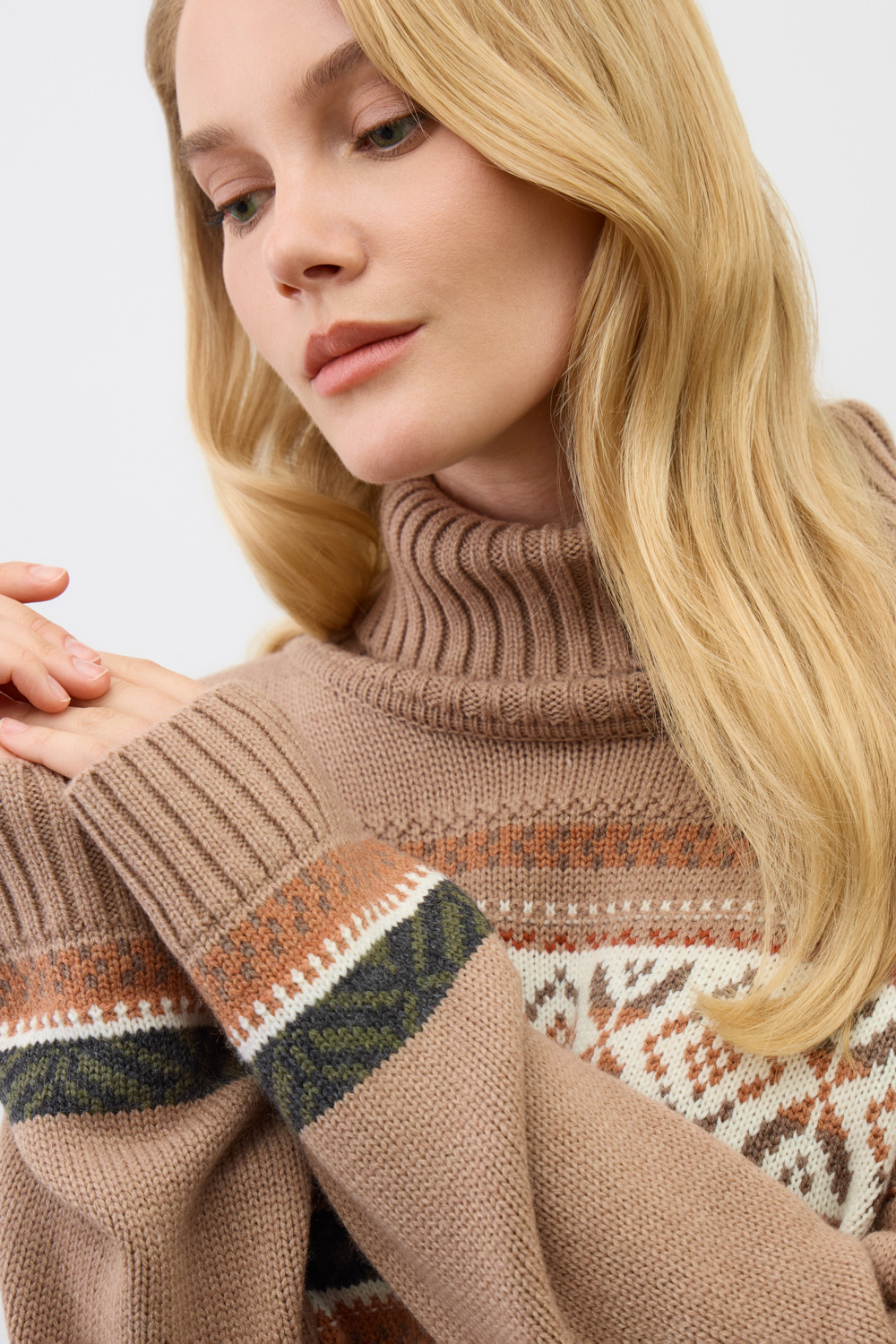 Мягкий джемпер в скандинавском стиле выполнен из пряжи премиум-класса. Идеальное сочетание шерсти и акрила обеспечивает комфорт, нежно облегает тело, является гипоаллергенным и прекрасно сохраняет свою форму.