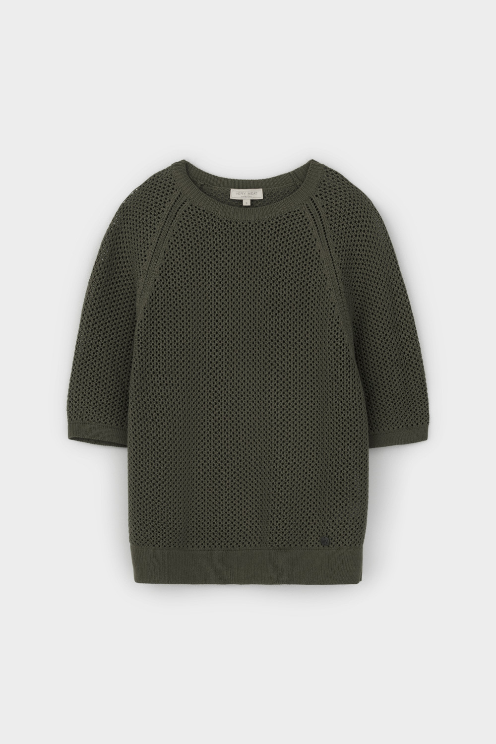 Джемпер свободного кроя ажурной вязки из итальянского хлопка. Умеренное переплетение, хлопок в составе, придают изделию форму и ощущение комфорта во время носки. Незаменим в повседневном летнем гардеробе.