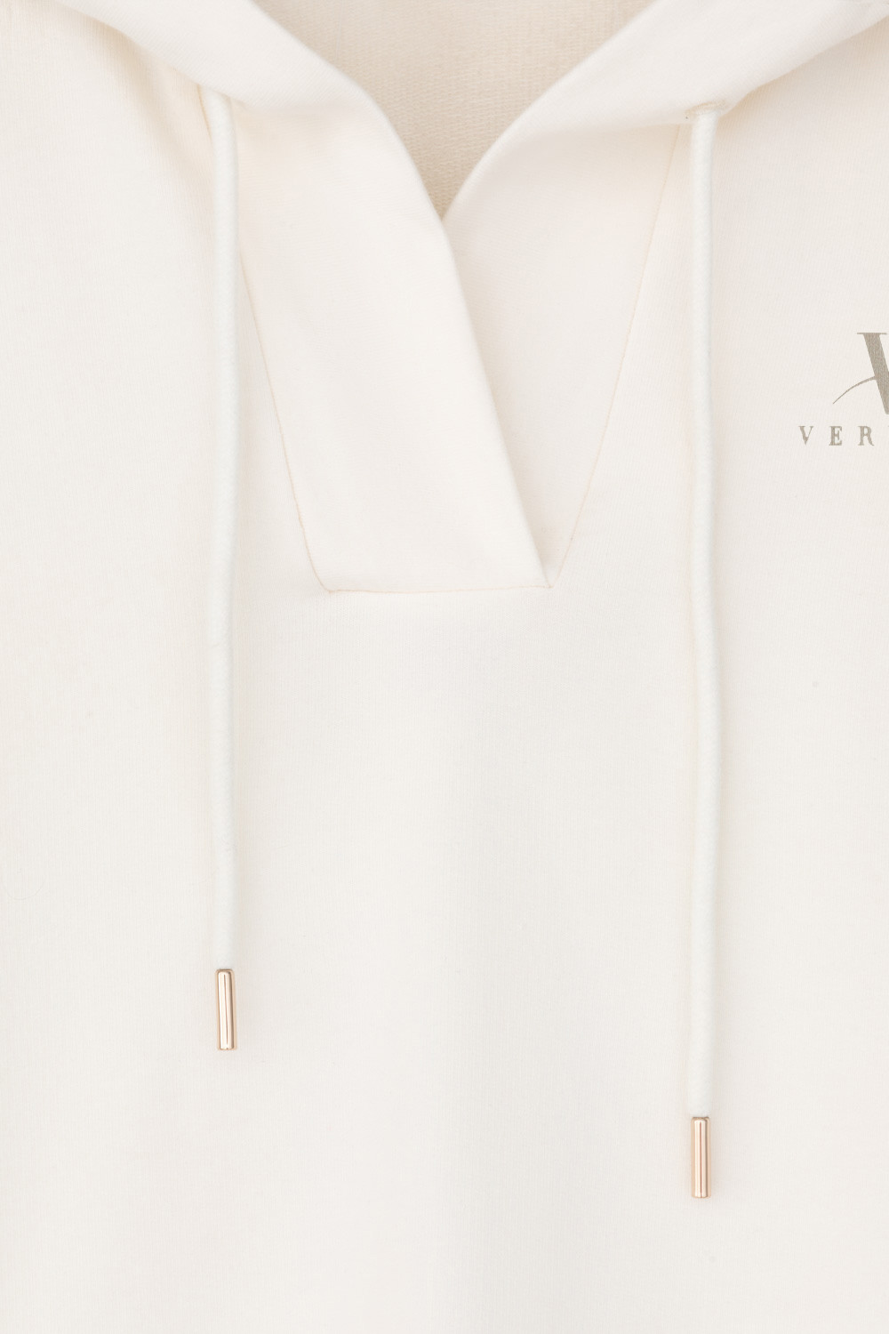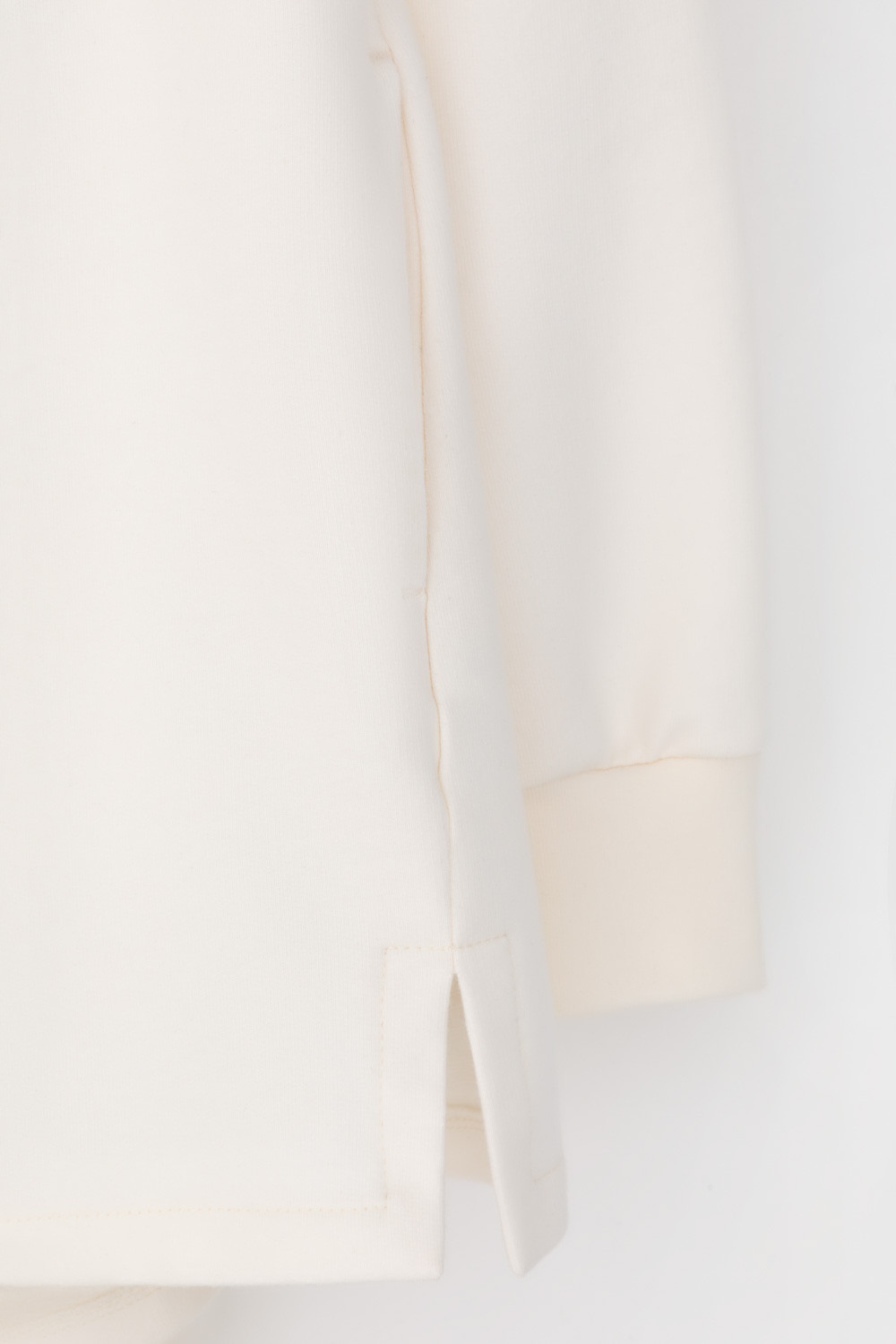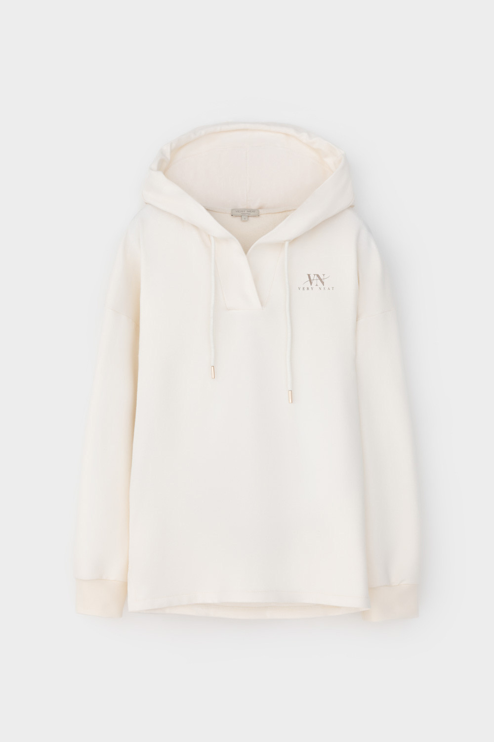 Подарите себе ощущение комфорта и уюта с худи из мягкого эластичного футера в теплом молочном оттенке. Спущенные плечи, удлиненная спинка и объёмный капюшон в сочетании с вместительными карманами придают изделию расслабленный вид.