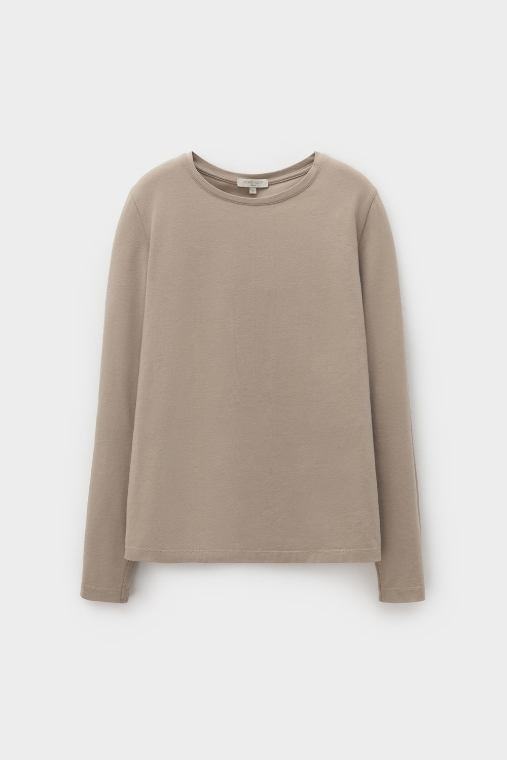 Базовый лонгслив из премиального трикотажа DOUBLE FACE.  Особая обработка ткани придает легкость и шелковистость текстуры. Имеет классический круглый вырез и удобный прямой крой.