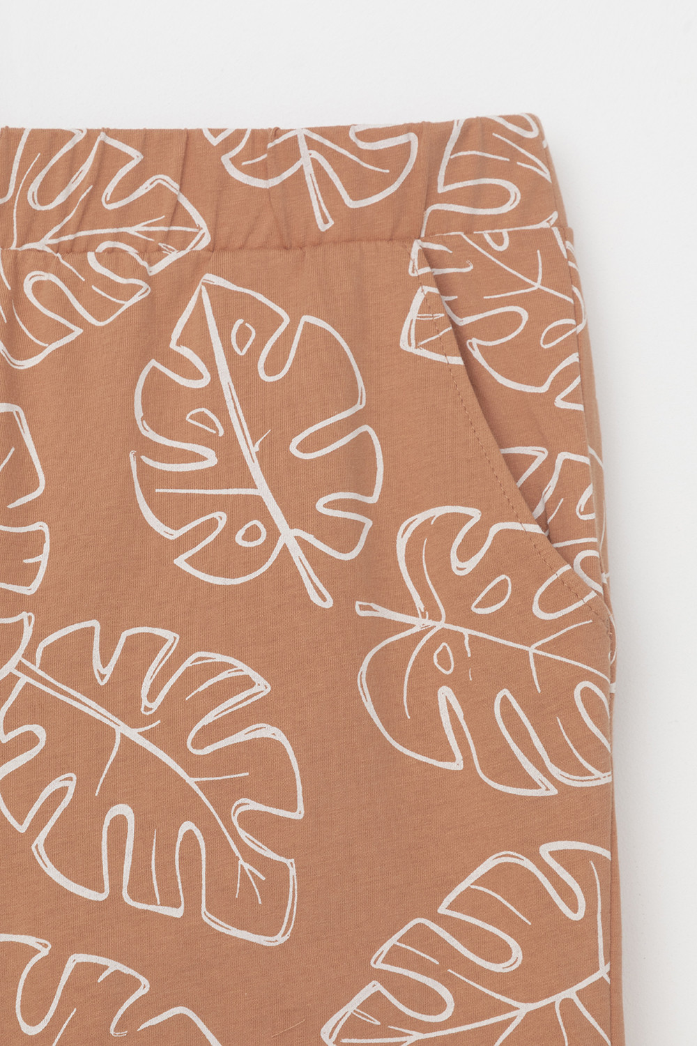 Легкий комплект для комфортного сна и отдыха. Свободная футболка с принтом и спущенной линией плеча комфортно садится по фигуре. Укороченные брюки с удобными боковыми карманами выполнены из набивного трикотажа. Гладкий материал приятен к телу и позволяет коже дышать.