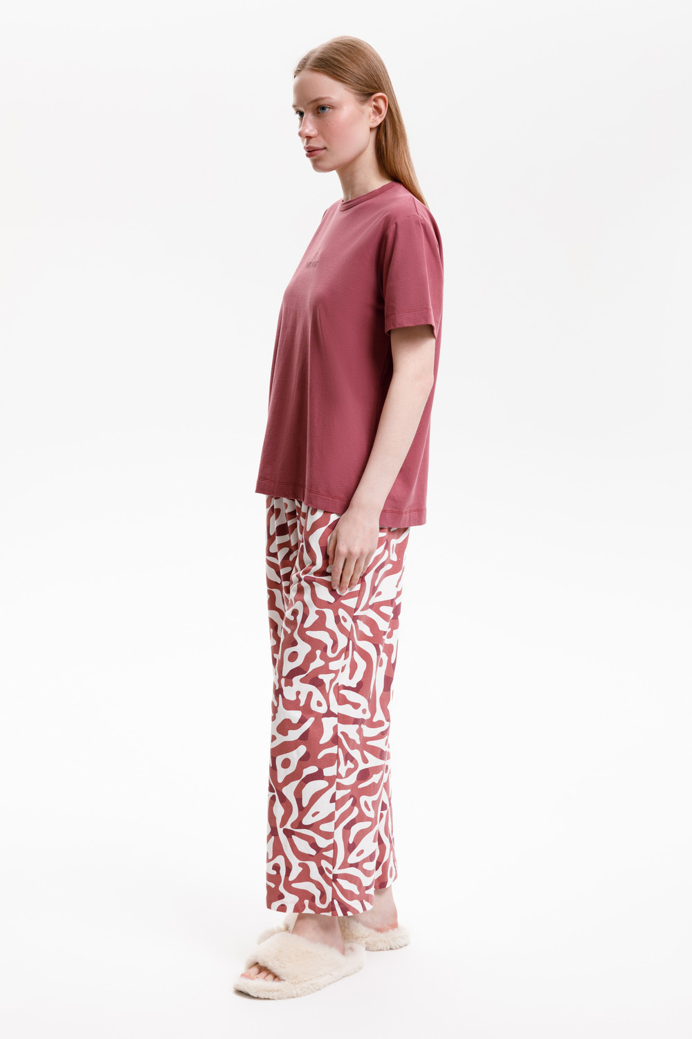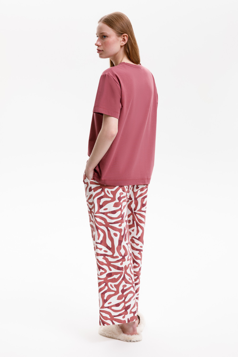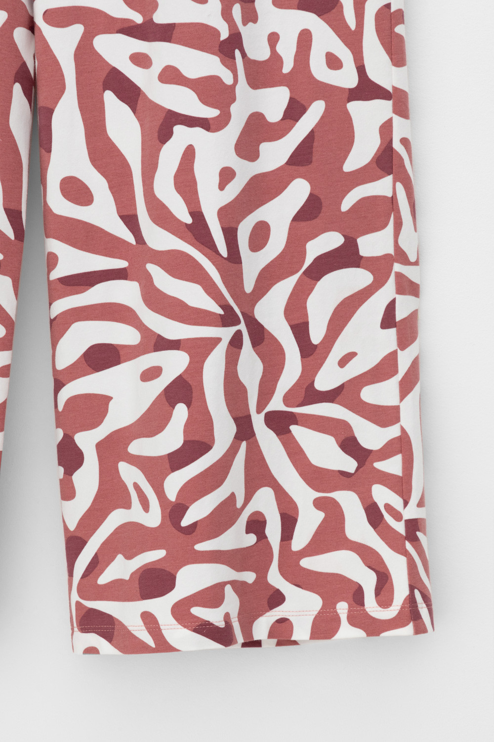 Комплект из высококачественного гребенного хлопка. Мягкий на ощупь принт на футболке выполнен на основе  водных красок, что обеспечивает устойчивость к многократным стиркам.  Комплект дополняют укороченные брюки с удобным поясом на резинке и практичными карманами.