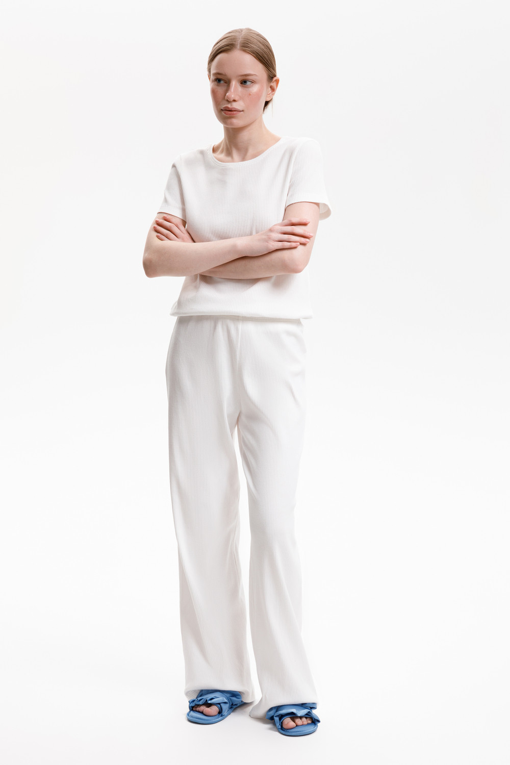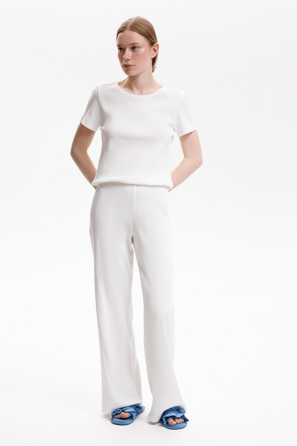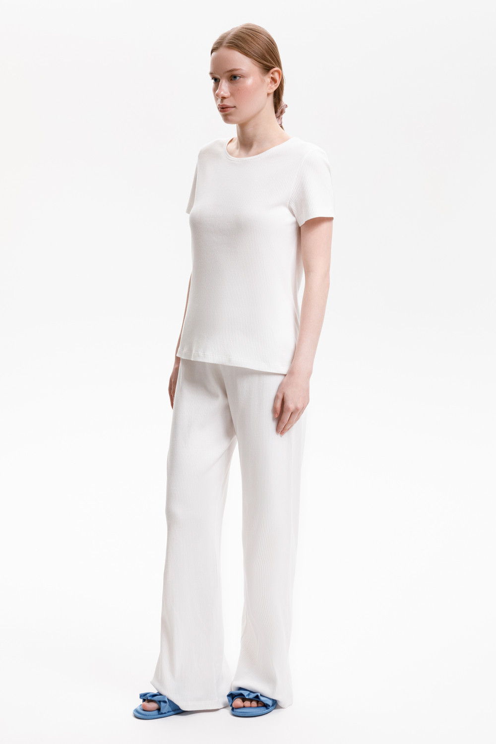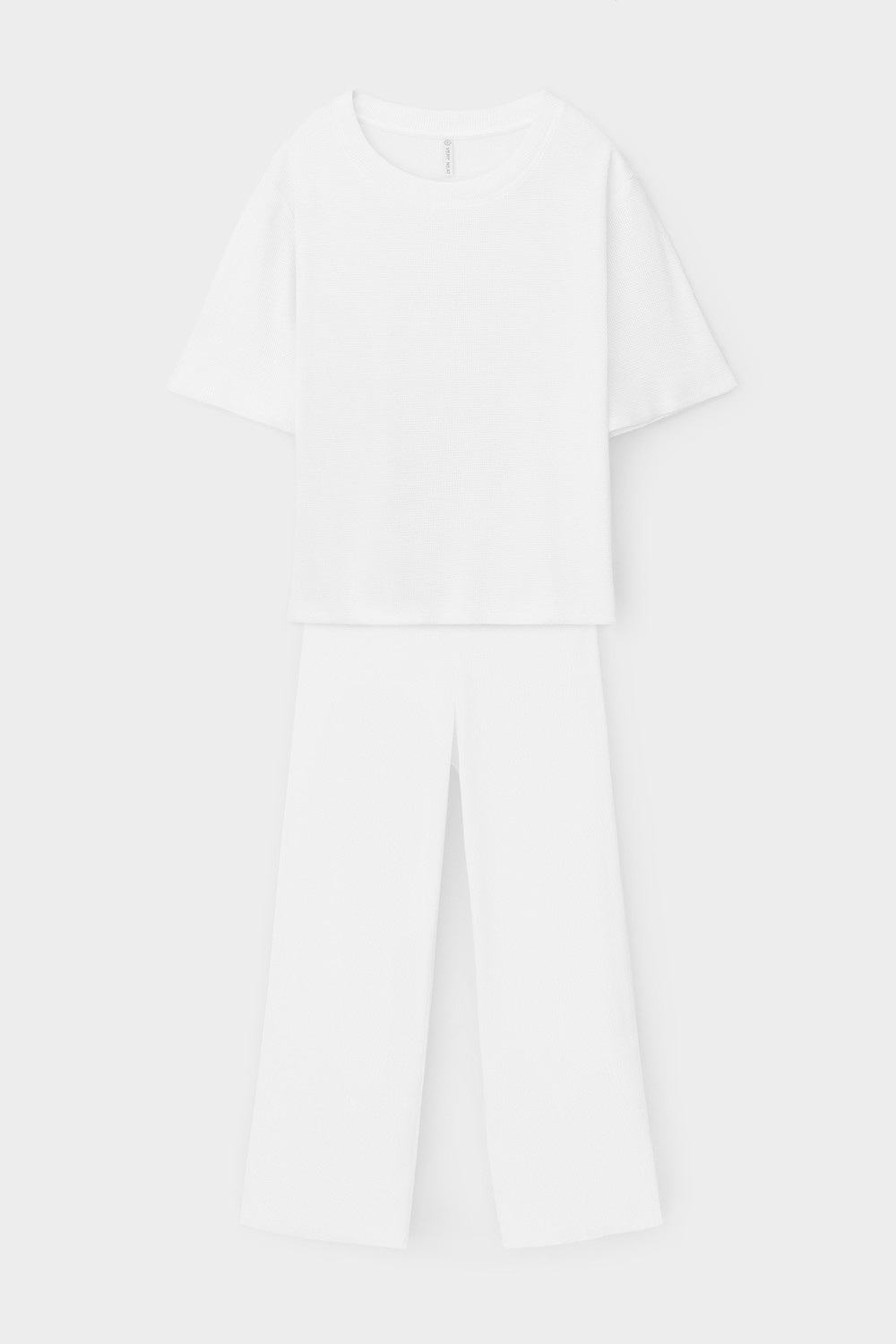 Комплект из нежнейшего высококачественного трикотажного полотна с добавлением спандекса. За счет фактуры переплетения и специальных обработок сохраняет силуэт и форму. Свободный крой футболки и мягкий пояс на брюках обеспечивают легкость и свободу движений.