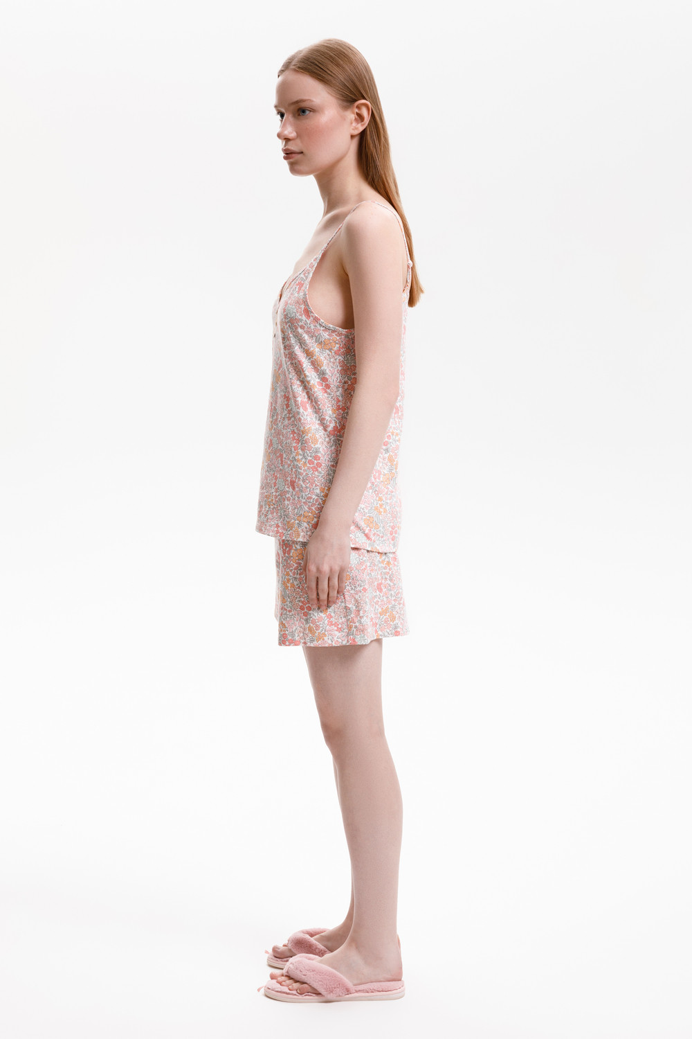 Комплект из высококачественного гребенного хлопка выполнен с вниманием к деталям. Регулируемые бретели позволяют подстроить их под ваши индивидуальные предпочтения, а комфортный пояс шорт обеспечивает свободу движений.