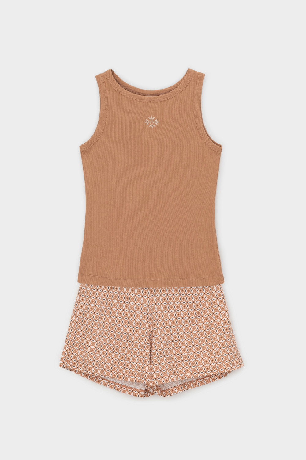 Топ из мягкого эластичного трикотажа в  рубчик  и шорты из высококачественного гребенного хлопка - это идеальное сочетание уютного комфорта.