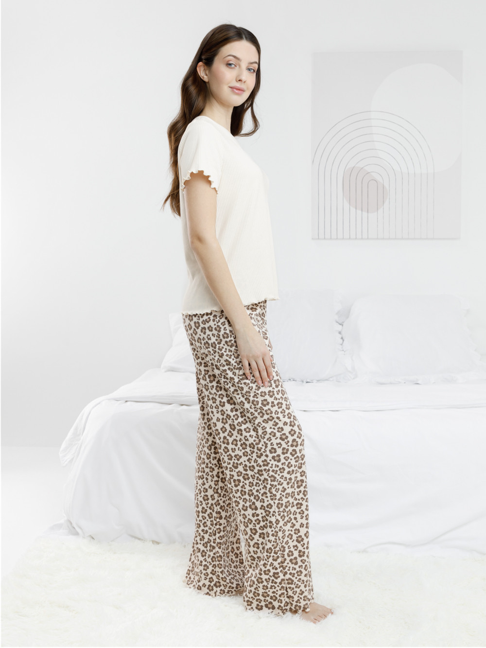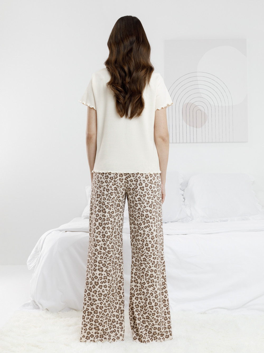 Пижама из трикотажа в рубчик для комфортного сна и отдыха. Эластичная футболка с короткими рукавами и широкие брюки с мягкой резинкой в поясе. Комплект изготовлен из 100% натурального хлопка. Материал приятен к телу, не теряет форму и позволяет коже дышать. Оригинальный рисунок выполнен из стойких текстильных гипоаллергенных красителей. Все трикотажные полотна производятся в соответствии с нормами швейцарского сертификата ЭкоТекс.