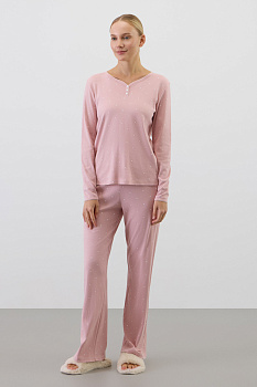 Комплект из высококачественного гребенного хлопка. Брюки с удобным поясом на резинке  добавляют комфорт и удобство домашнему отдыху.
