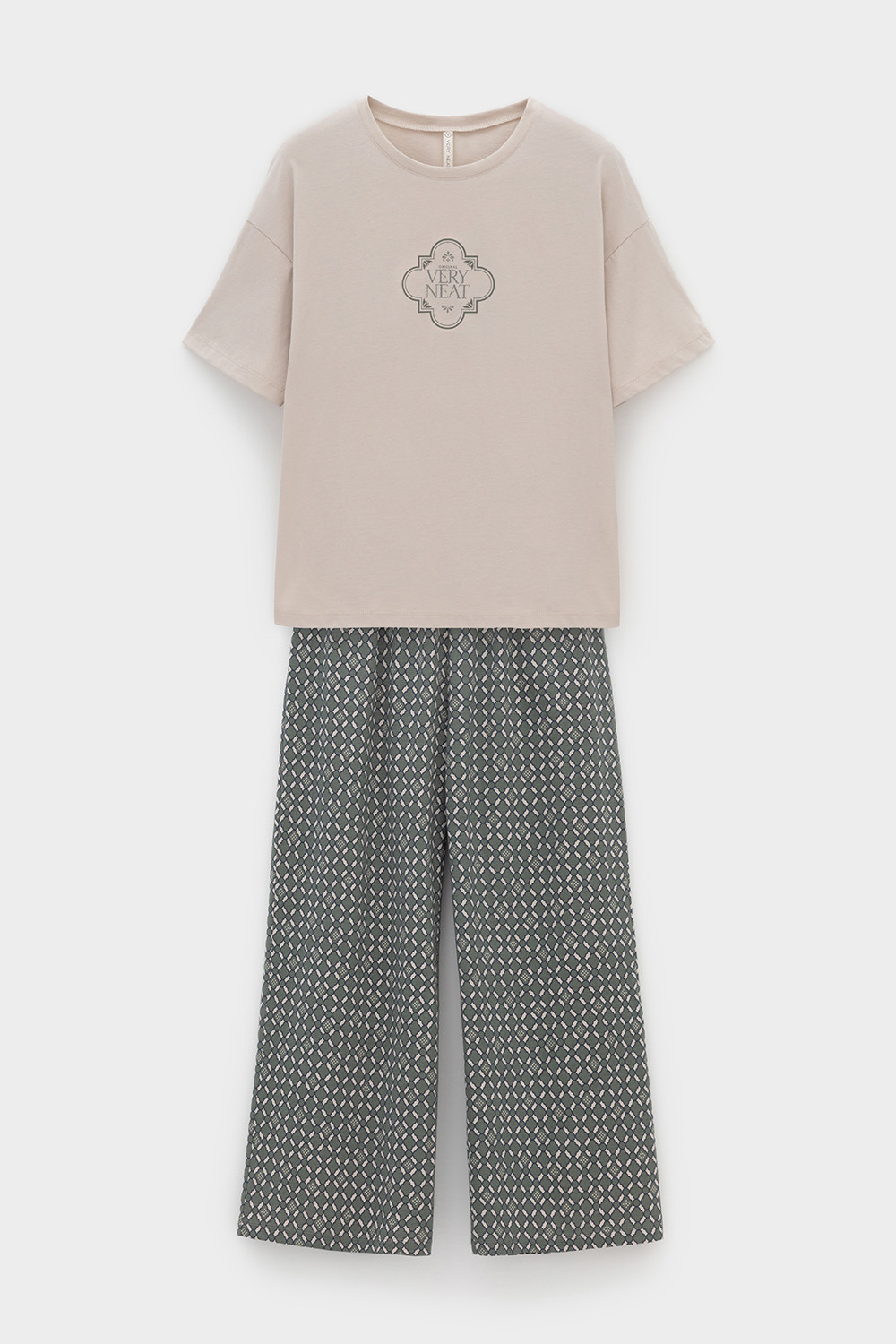 Комплект из высококачественного гребенного хлопка. Брюки с удобным поясом на резинке и практичными карманами добавляют практичности и удобства.