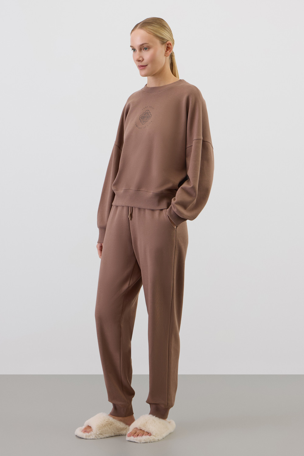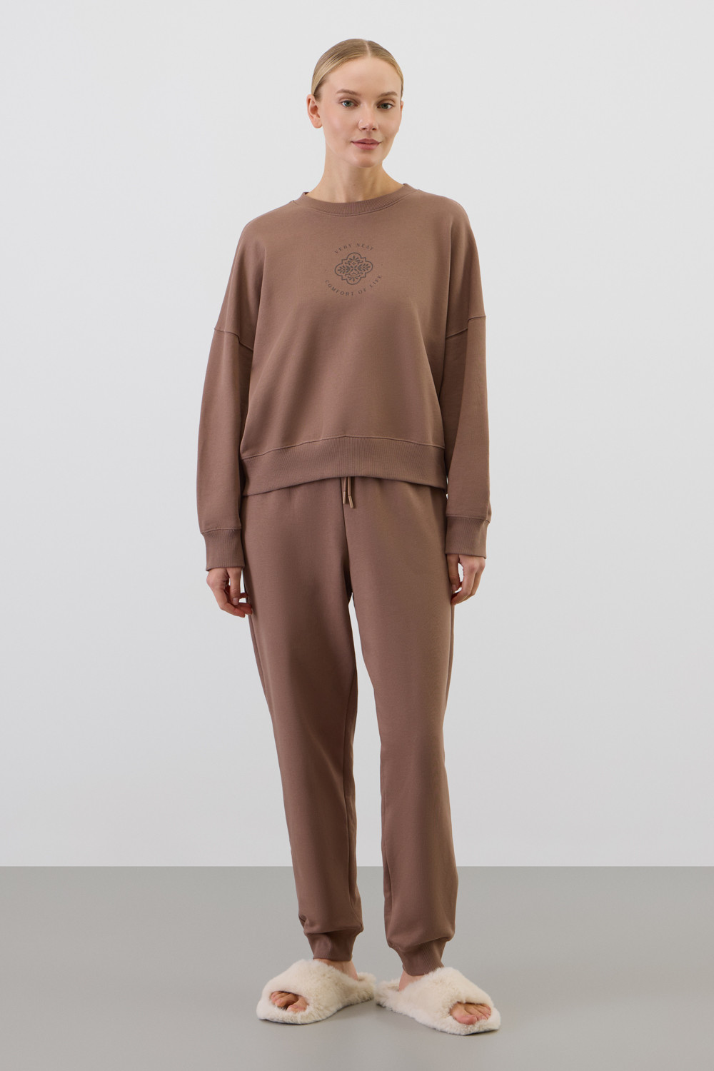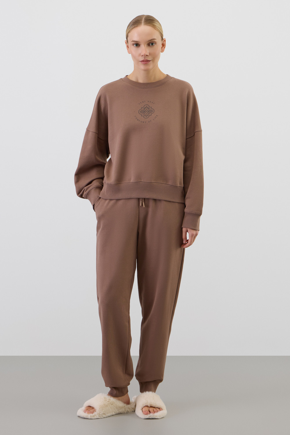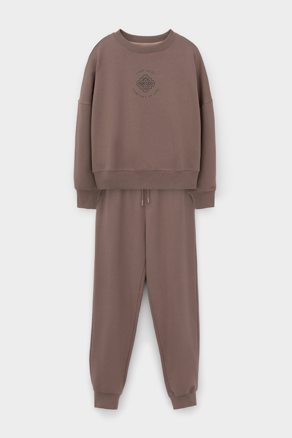Комплект из 100% петельчатого футера.  Мягкий пояс и спортивный силуэт заставят вас влюбиться в его комфорт!