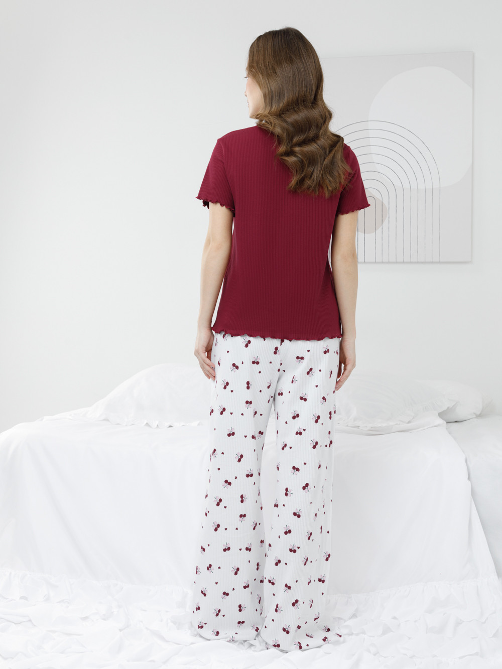 Пижама из трикотажа в рубчик для комфортного сна и отдыха. Эластичная футболка с короткими рукавами и широкие брюки с мягкой резинкой в поясе. Комплект изготовлен из 100% натурального хлопка. Материал приятен к телу, не теряет форму и позволяет коже дышать. Оригинальный рисунок выполнен из стойких текстильных гипоаллергенных красителей. Все трикотажные полотна производятся в соответствии с нормами швейцарского сертификата ЭкоТекс.