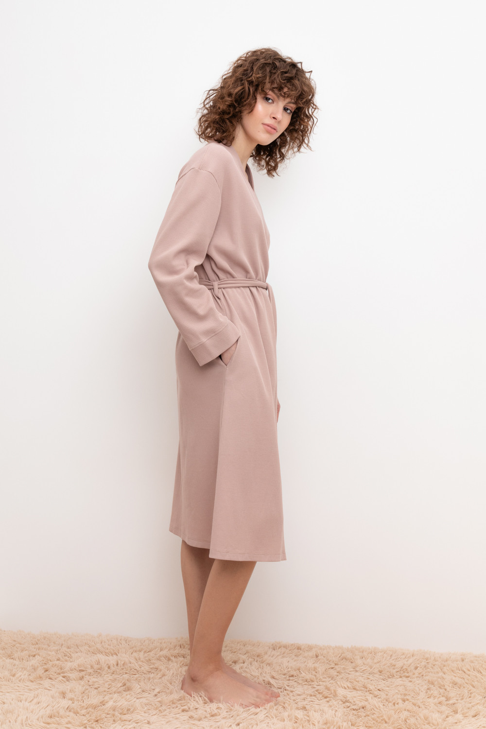 Уютный халат из 100% натурального хлопка на запах с длинными рукавами. В боковых швах два удобных кармана. С помощью пояса можно регулировать посадку и силуэт. Вафельное переплетение прекрасно впитывает влагу и сохраняет тепло.