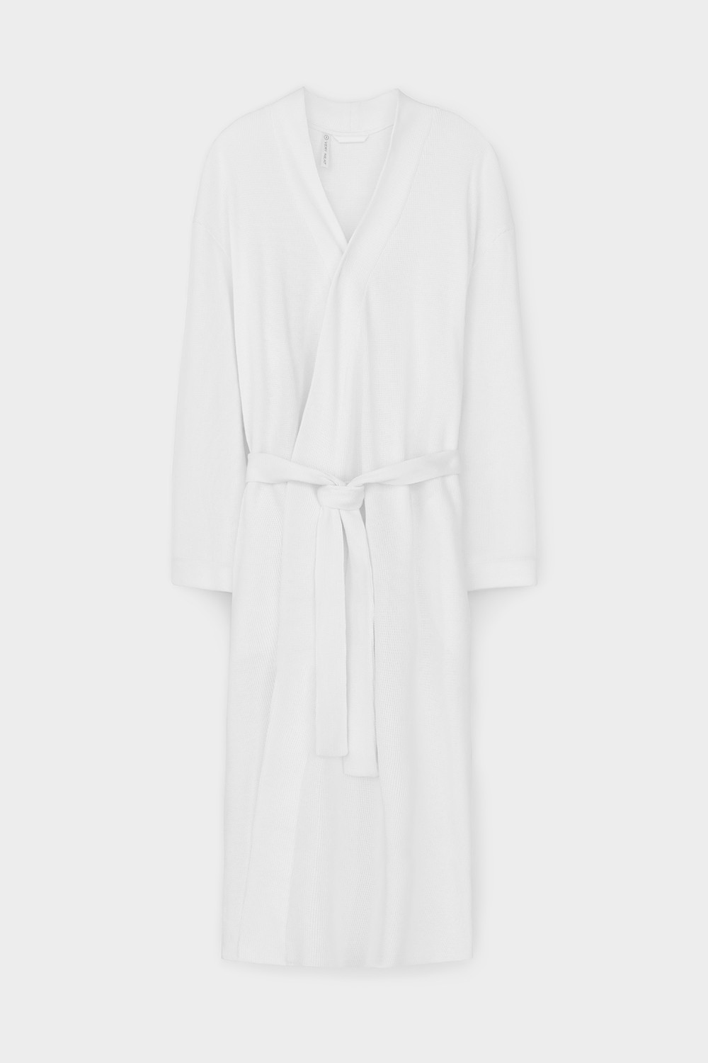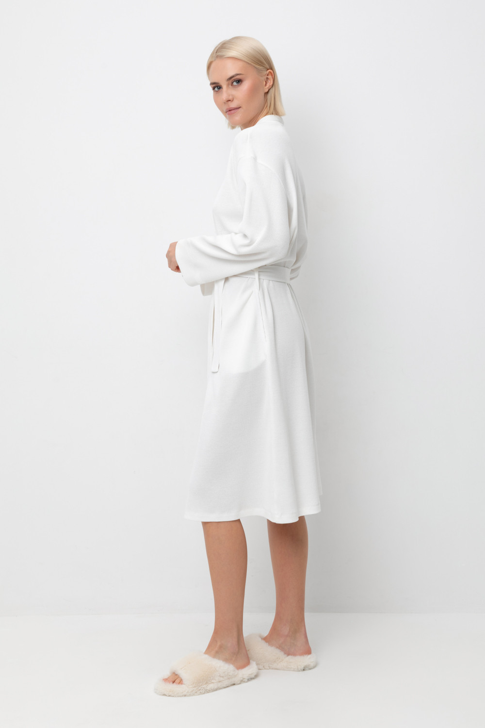 Халат из мягкого объемного трикотажа с добавлением эластичных волокон подарит атмосферу домашнего уюта и комфорта.