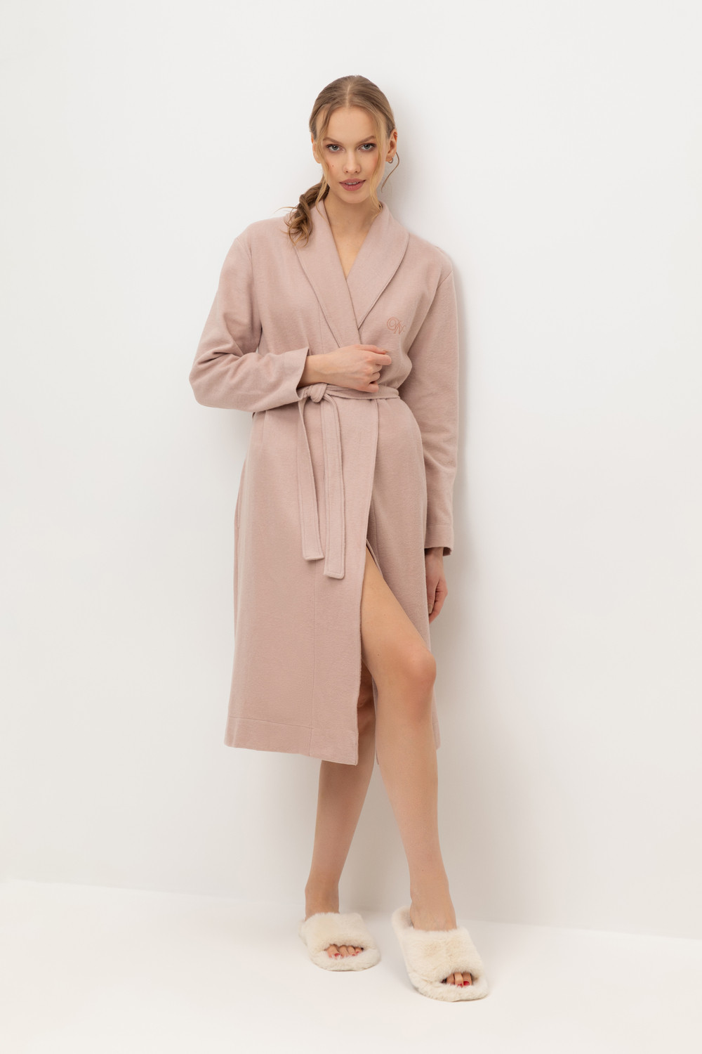 Халат из мягкого 100% хлопка с обработкой пич эффектом  подарит атмосферу домашнего уюта и комфорта, придавая изделию бархатистость и мягкость.
