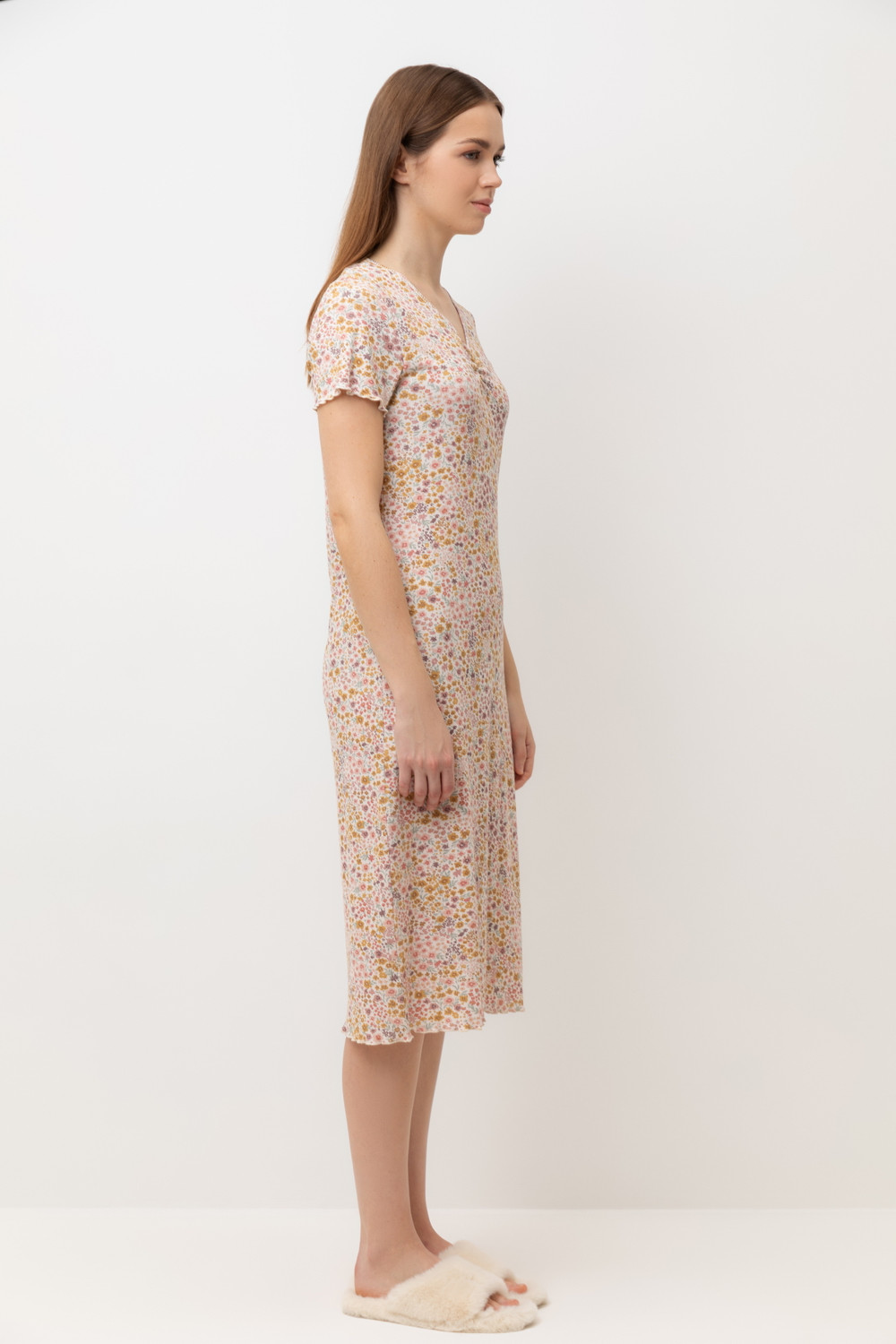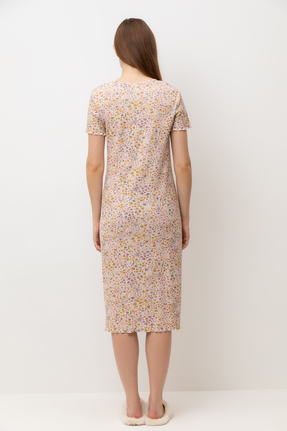 Комфортная сорочка  выполнена из  высококачественного трикотажа в рубчик. Свободный крой добавляет комфорта во время сна.