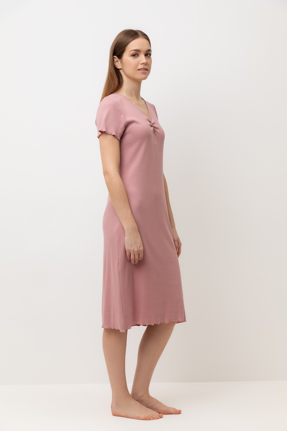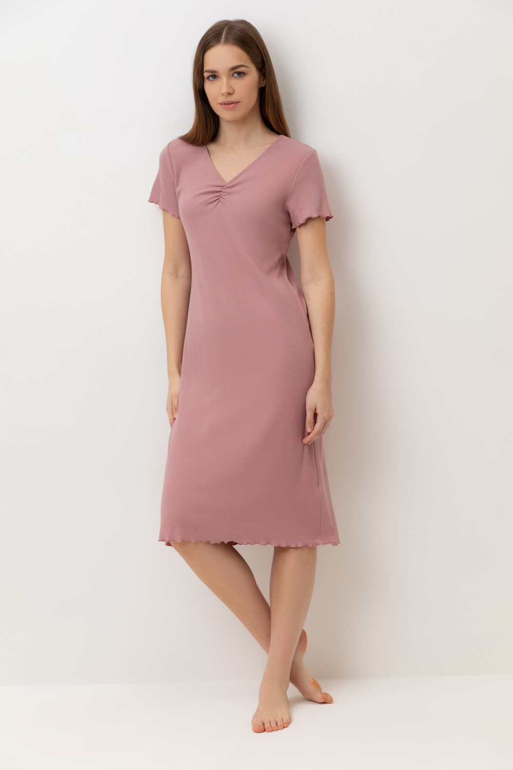 Комфортная сорочка  выполнена из  высококачественного трикотажа в рубчик. Свободный крой добавляет комфорта во время сна.