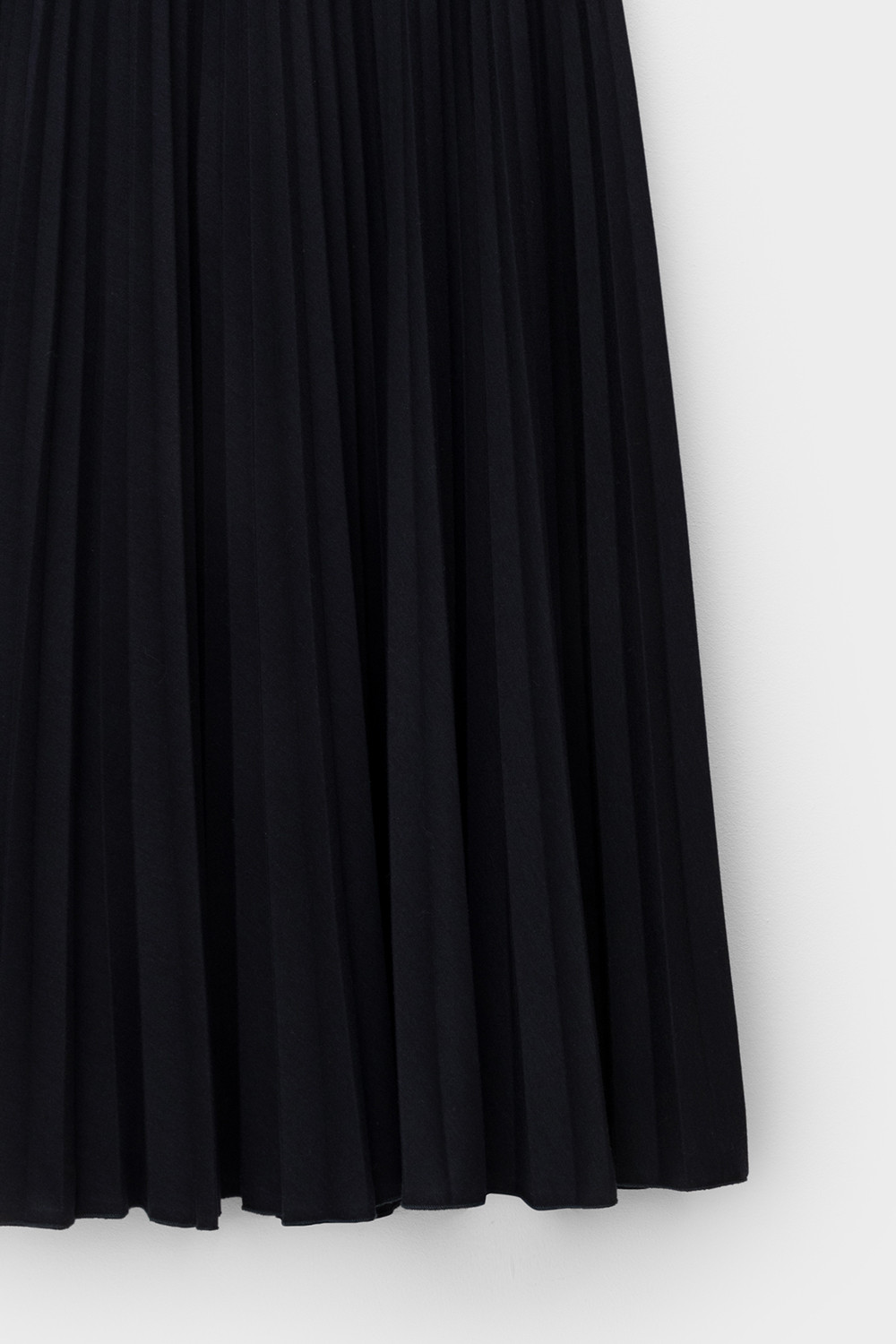 Юбка гофре, выполненная из высококачественного трикотажного полотна DOUBLE FACE, отличается особой легкостью и шелковистой текстурой благодаря силиконовой обработке ткани. Она элегантно струится, создавая ощущение легкости и воздушности. Мелкие складки визуально удлиняют силуэт, подчеркивая женственность.