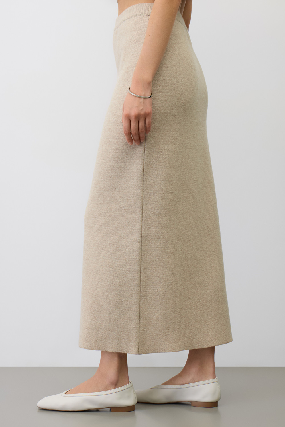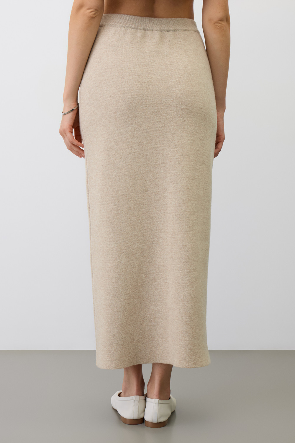 Элегантная юбка, изготовленная из высококачественной пряжи мериноса в сочетании с кашемиром и вискозой. Модель деликатно подчеркивает силуэт, обеспечивает нежное прикосновение к коже  и сохраняет безупречный внешний вид.