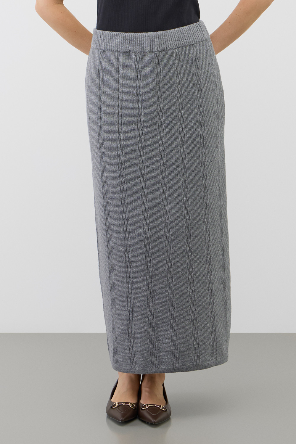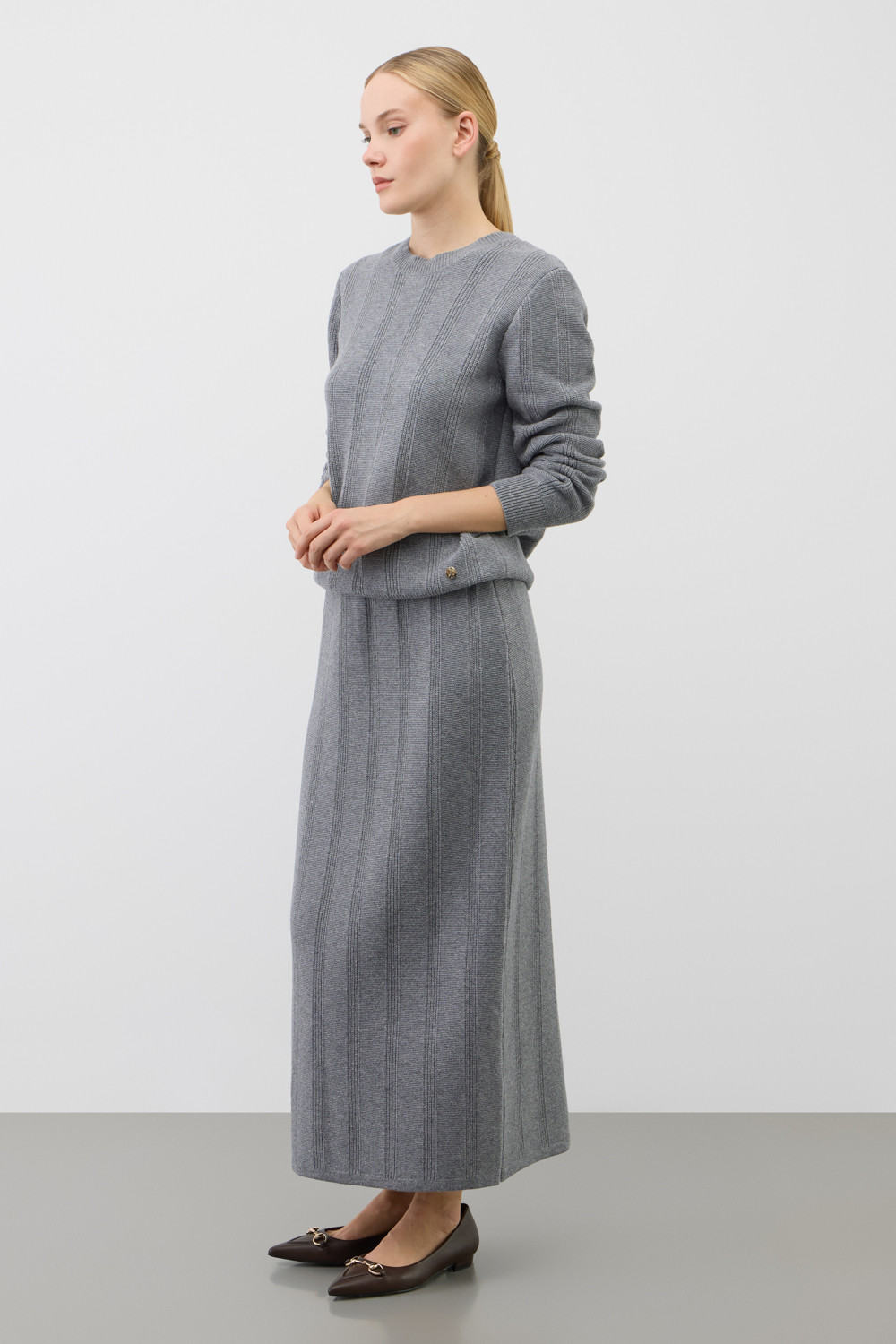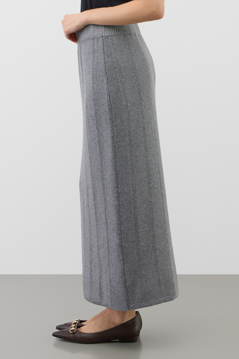 Эксклюзивная модель из высококачественной итальянской шерсти с добавлением кашемира и мериноса  — идеальное сочетание для безупречного комфорта и элегантности. Рельефная текстура подчеркивает утонченный вкус и делает эту юбку незаменимым элементом гардероба.