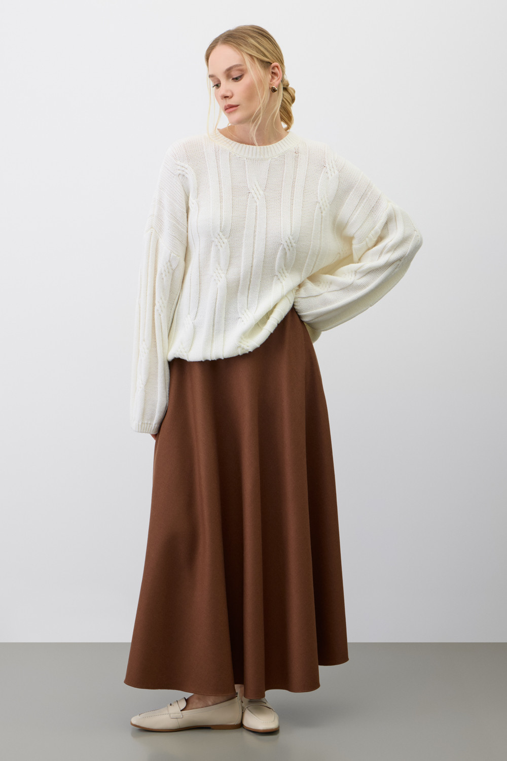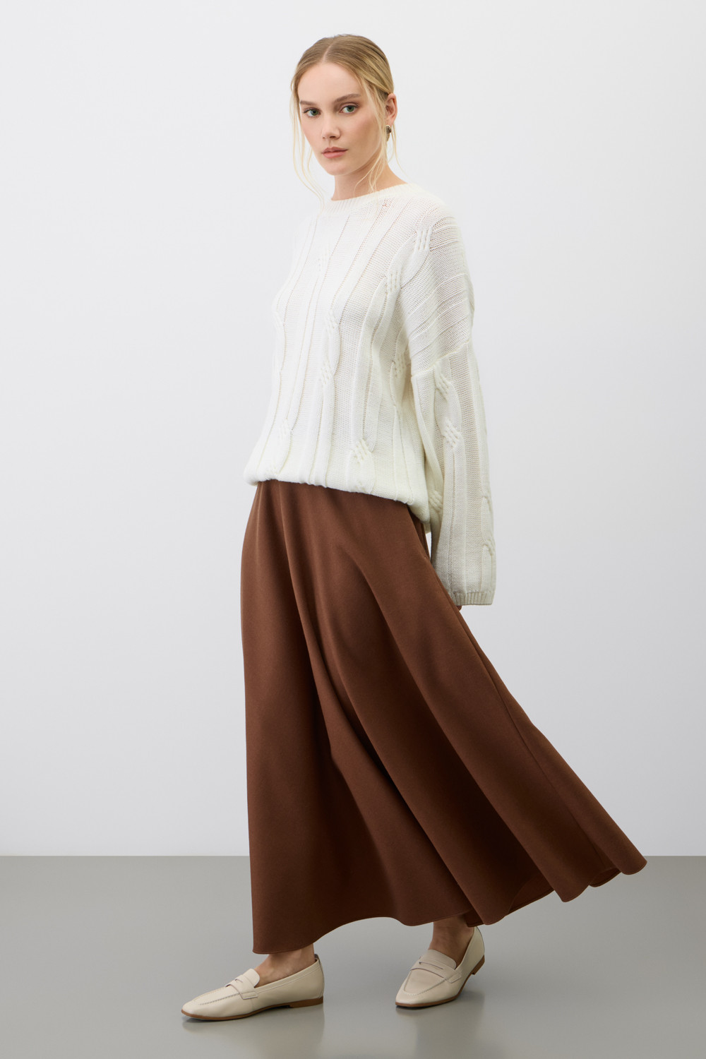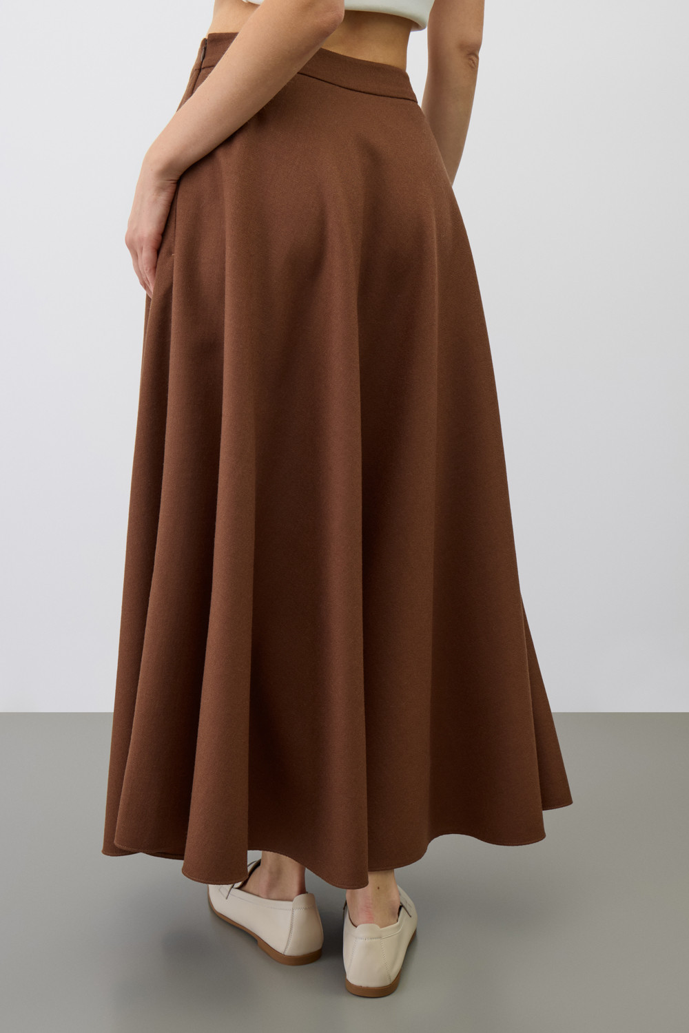 Натуральная шерсть не только приятна на ощупь, но и обладает отличными теплоизоляционными характеристиками. Крой в стиле полусолнце мягко обрисовывает силуэт, акцентируя внимание на талии.