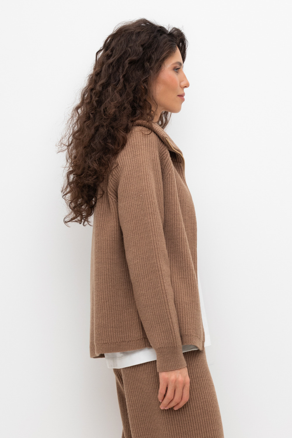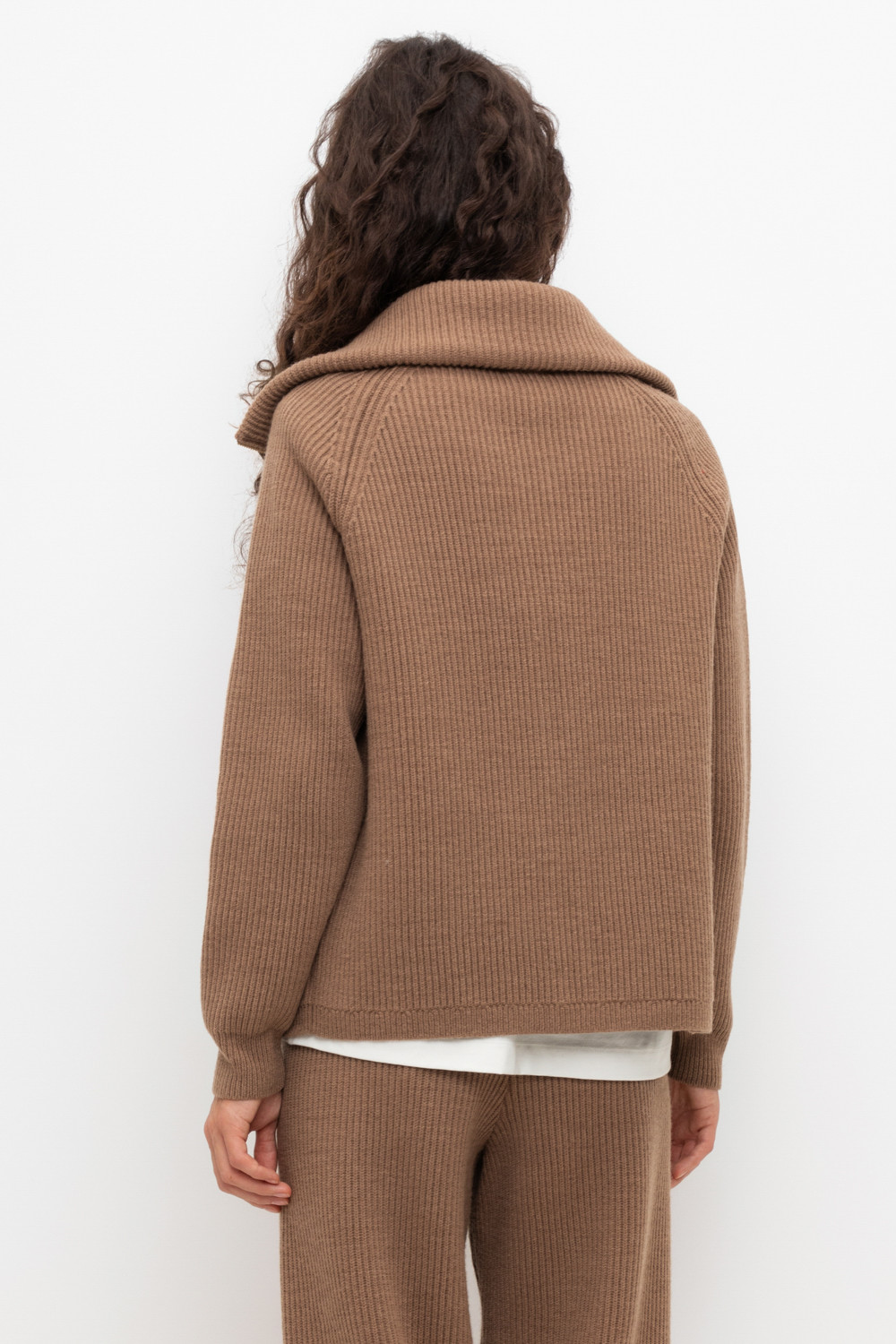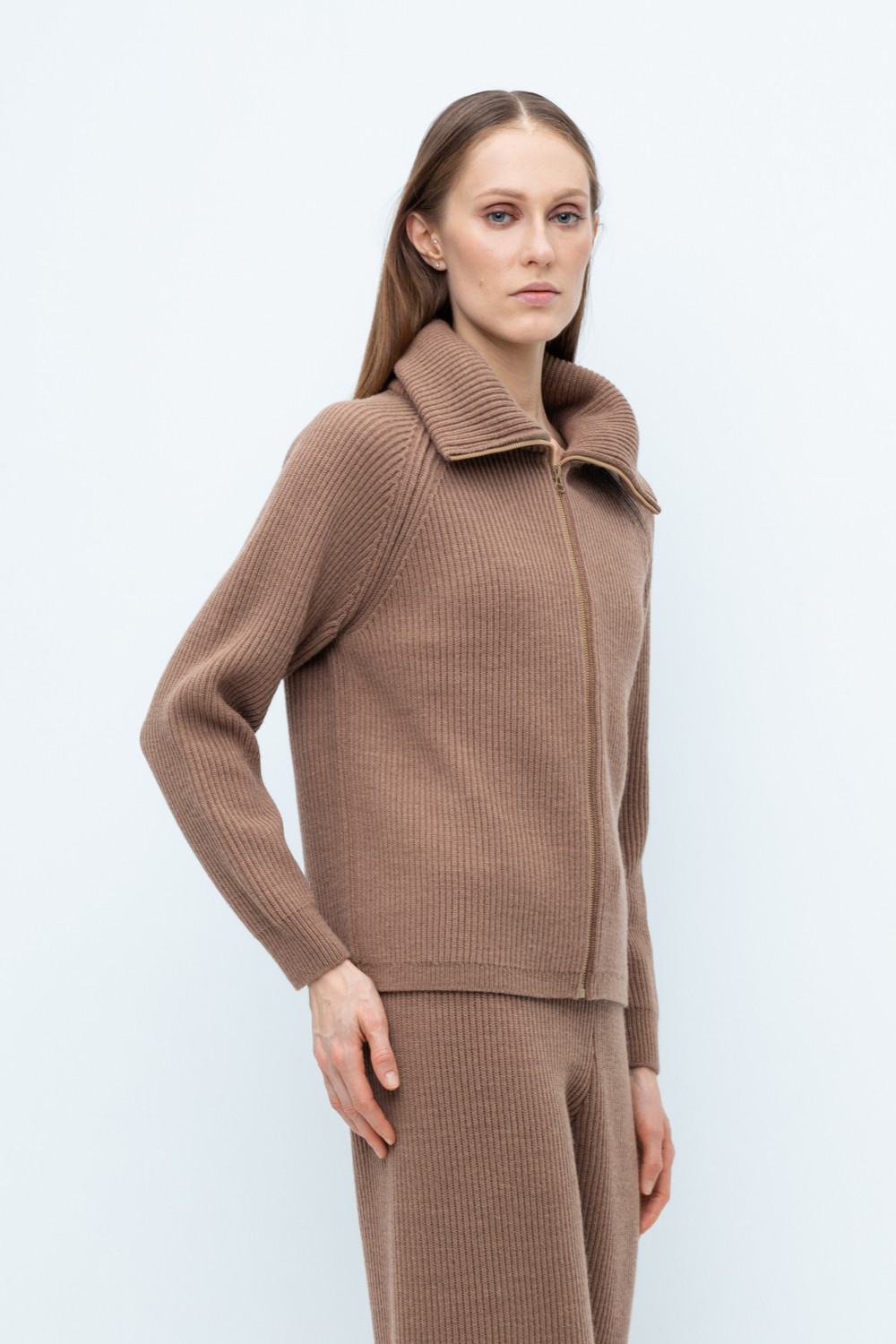 Кардиган вязаный на молнии. Изготовлен из мягкой полушерстяной пряжи. Шерсть в составе сохраняет тепло, акрил делает изделие мягким.