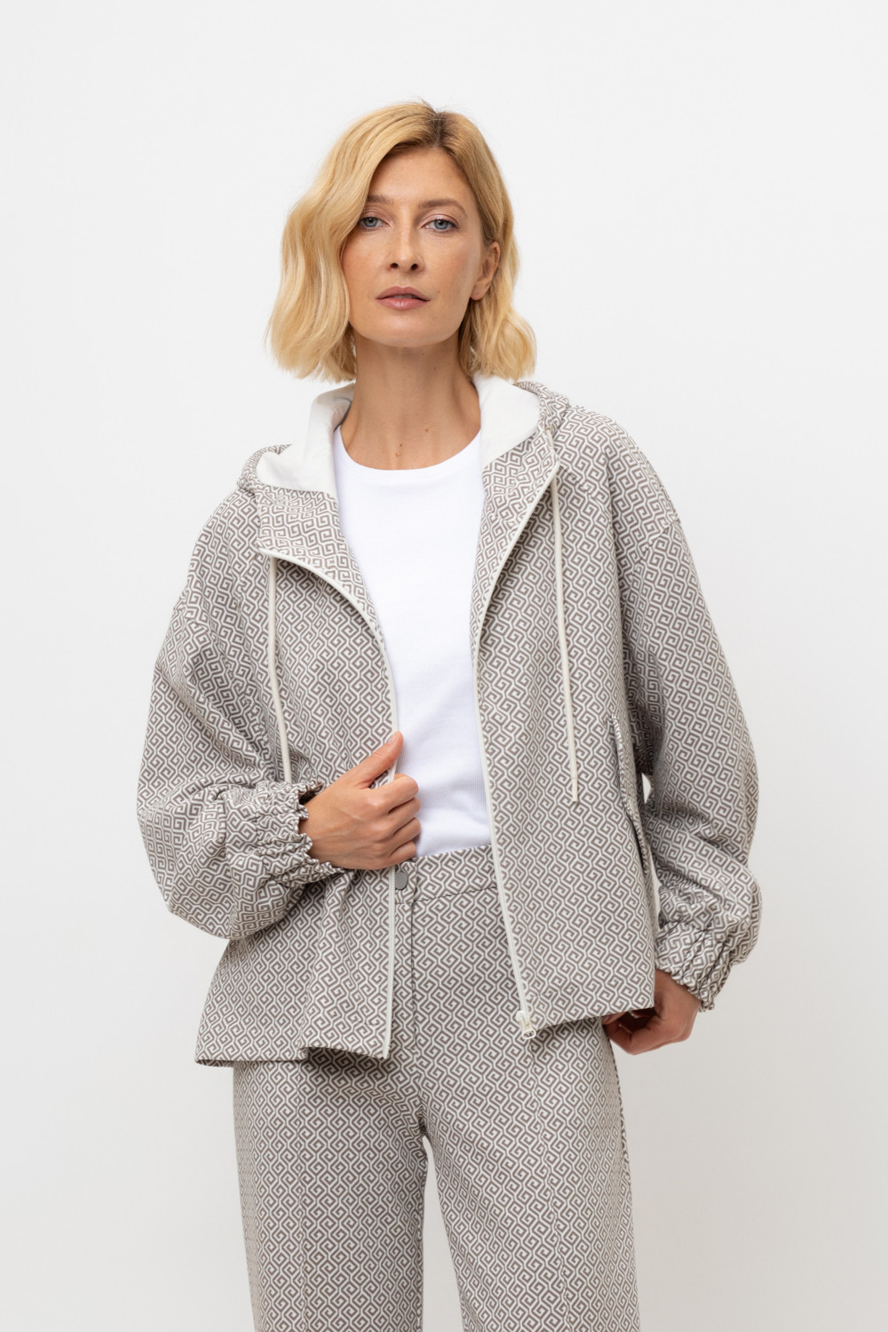 Толстовка с капюшоном на молнии из премиального трикотажа. Объем изделию придают защиты на спине и свободный силуэт. Рукава в виде реглана завершены мягкими манжетами с эластичной резинкой внутри.