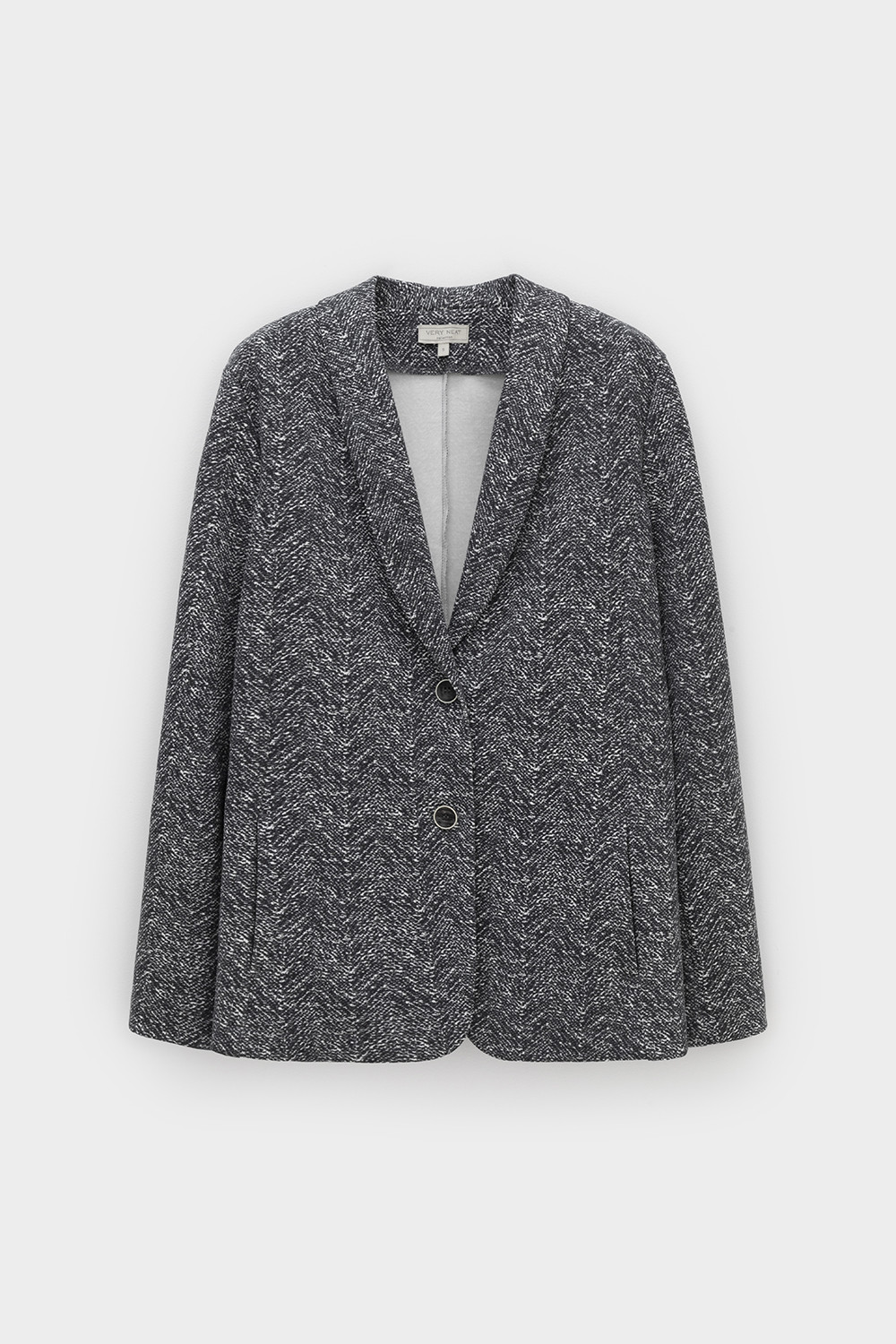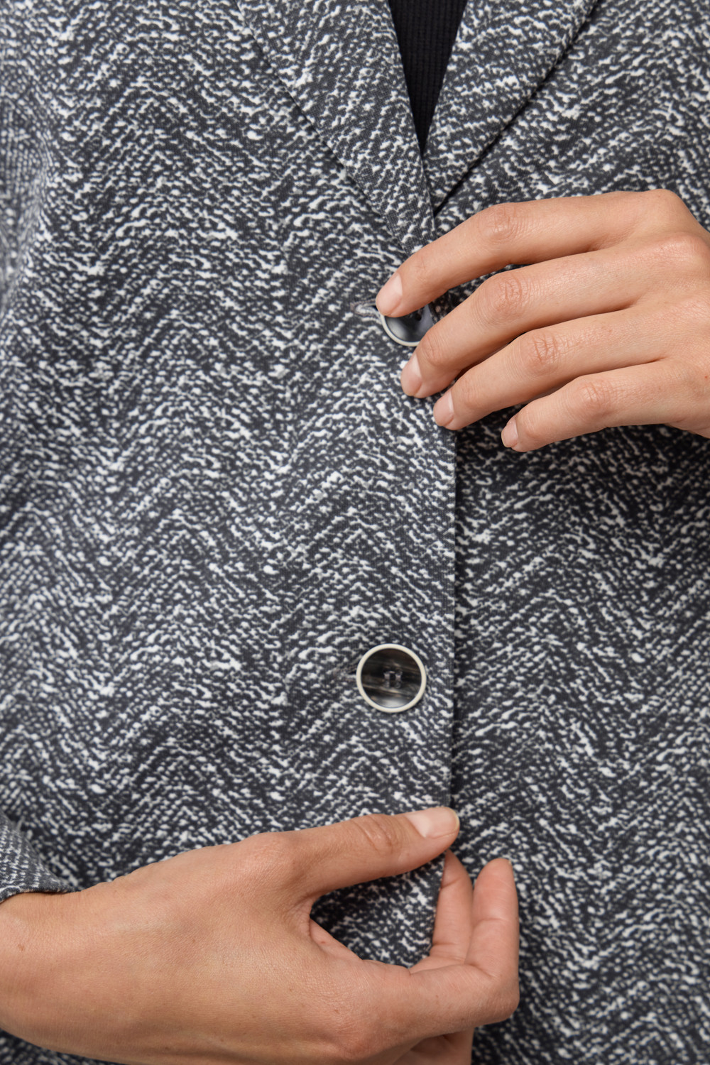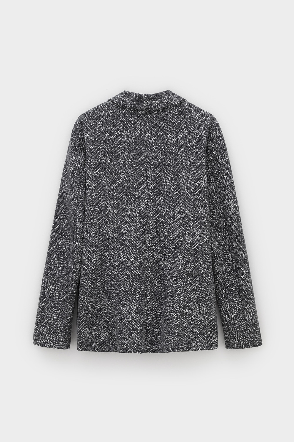 Приталенный пиджак изготовлен из высококачественного трикотажного полотна DOUBLE FACE. Обработка силиконом придает ему легкость и шелковистую текстуру. Благодаря уникальному переплетению и специальным методам обработки, он сохраняет свой силуэт и форму, что позволяет легко комбинировать его как с юбками, так и с брюками.