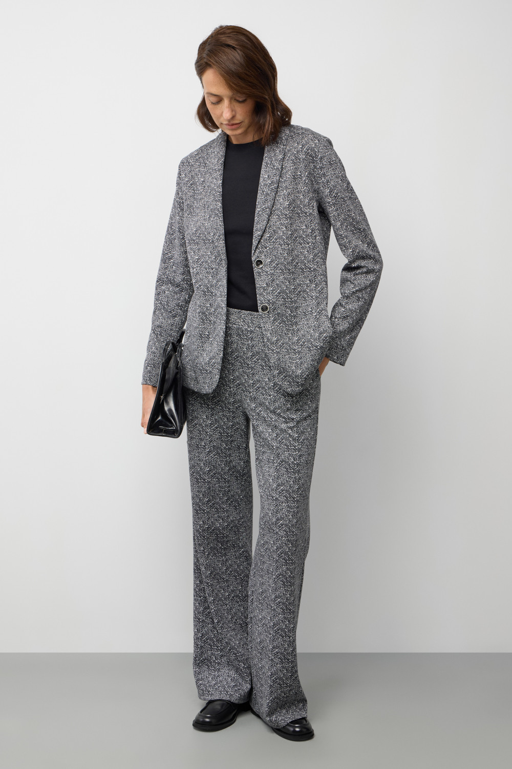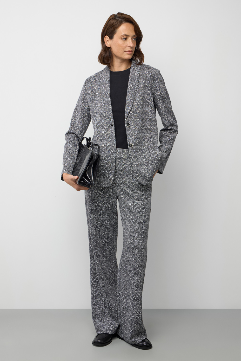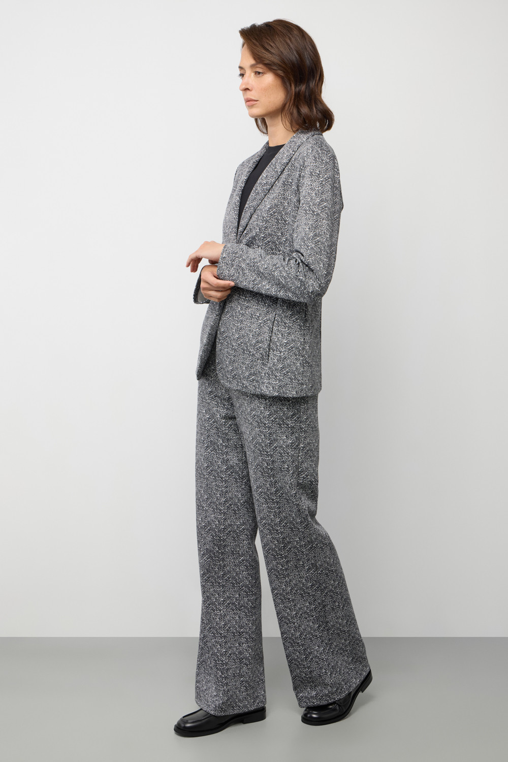 Приталенный пиджак изготовлен из высококачественного трикотажного полотна DOUBLE FACE. Обработка силиконом придает ему легкость и шелковистую текстуру. Благодаря уникальному переплетению и специальным методам обработки, он сохраняет свой силуэт и форму, что позволяет легко комбинировать его как с юбками, так и с брюками.