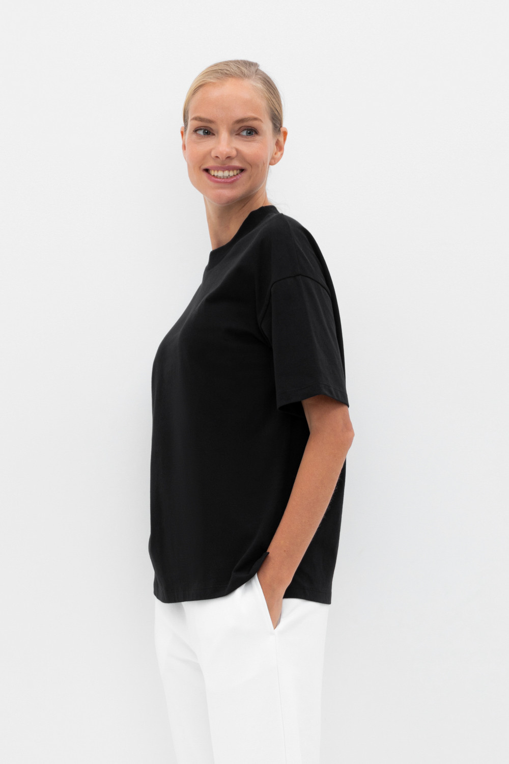 Женская футболка с разрезами и принтом из длинноволокнистого гребенного хлопка.