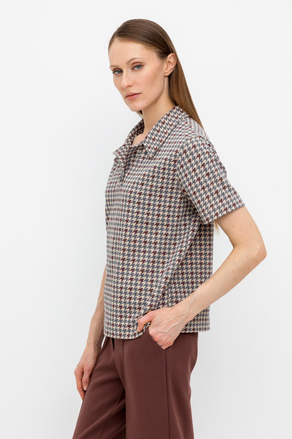 Джемпер поло с короткими рукавами из интерлока с V-образным вырезом и декоративной пуговицей.