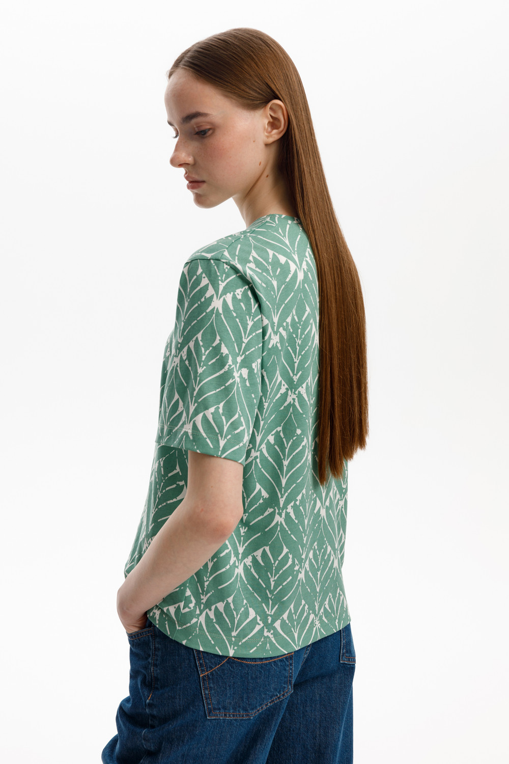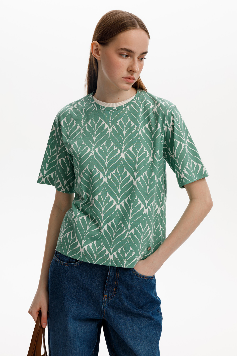 Футболка прямого силуэта из высококачественного гребенного хлопка. Дизайн орнамента на футболке создает летнее настроение.