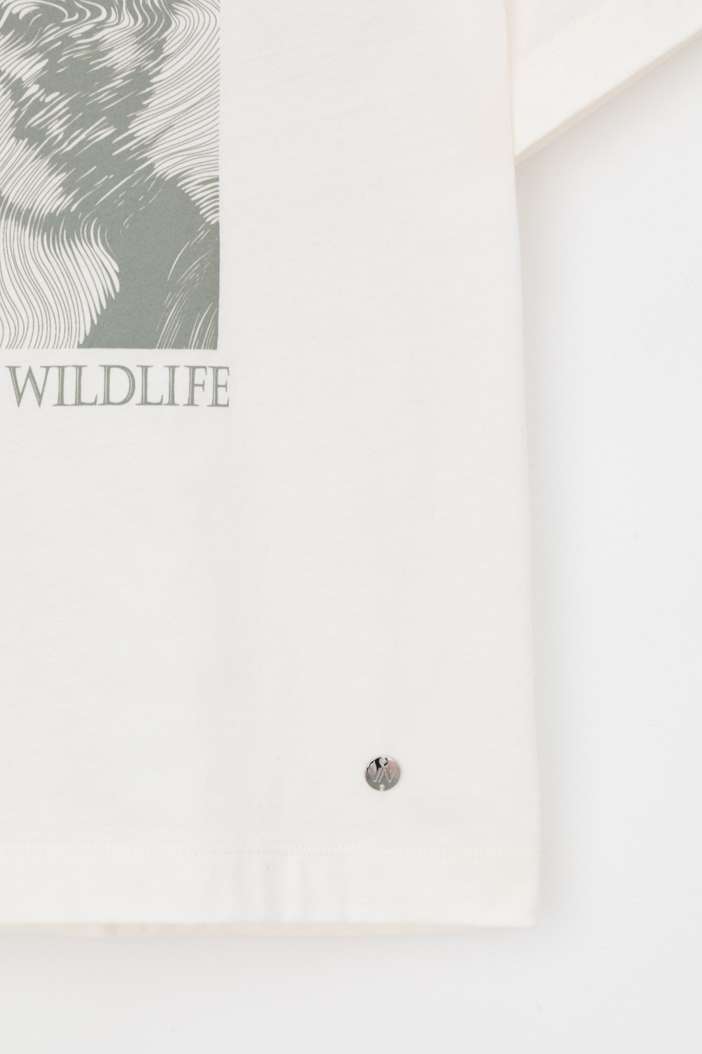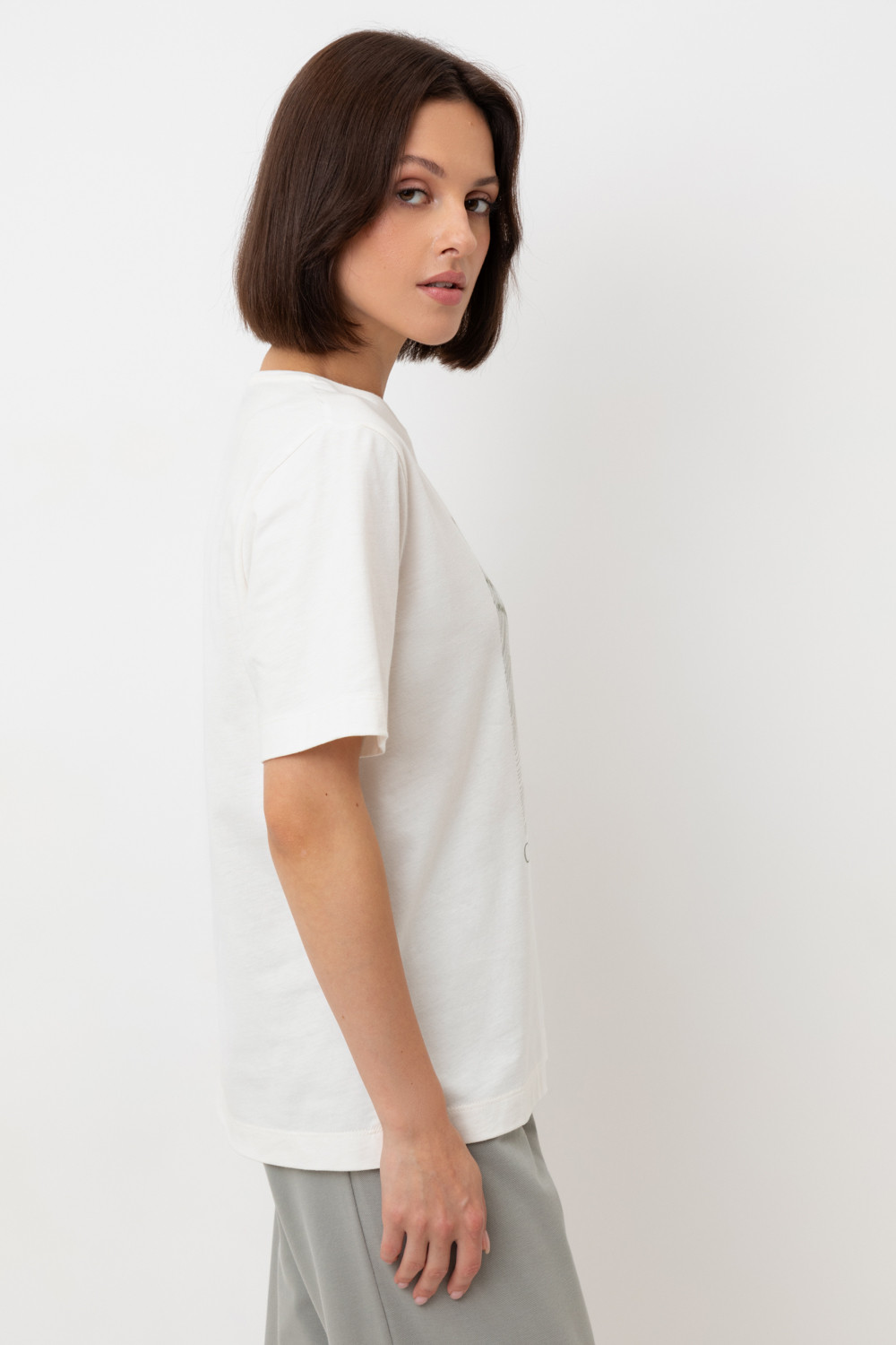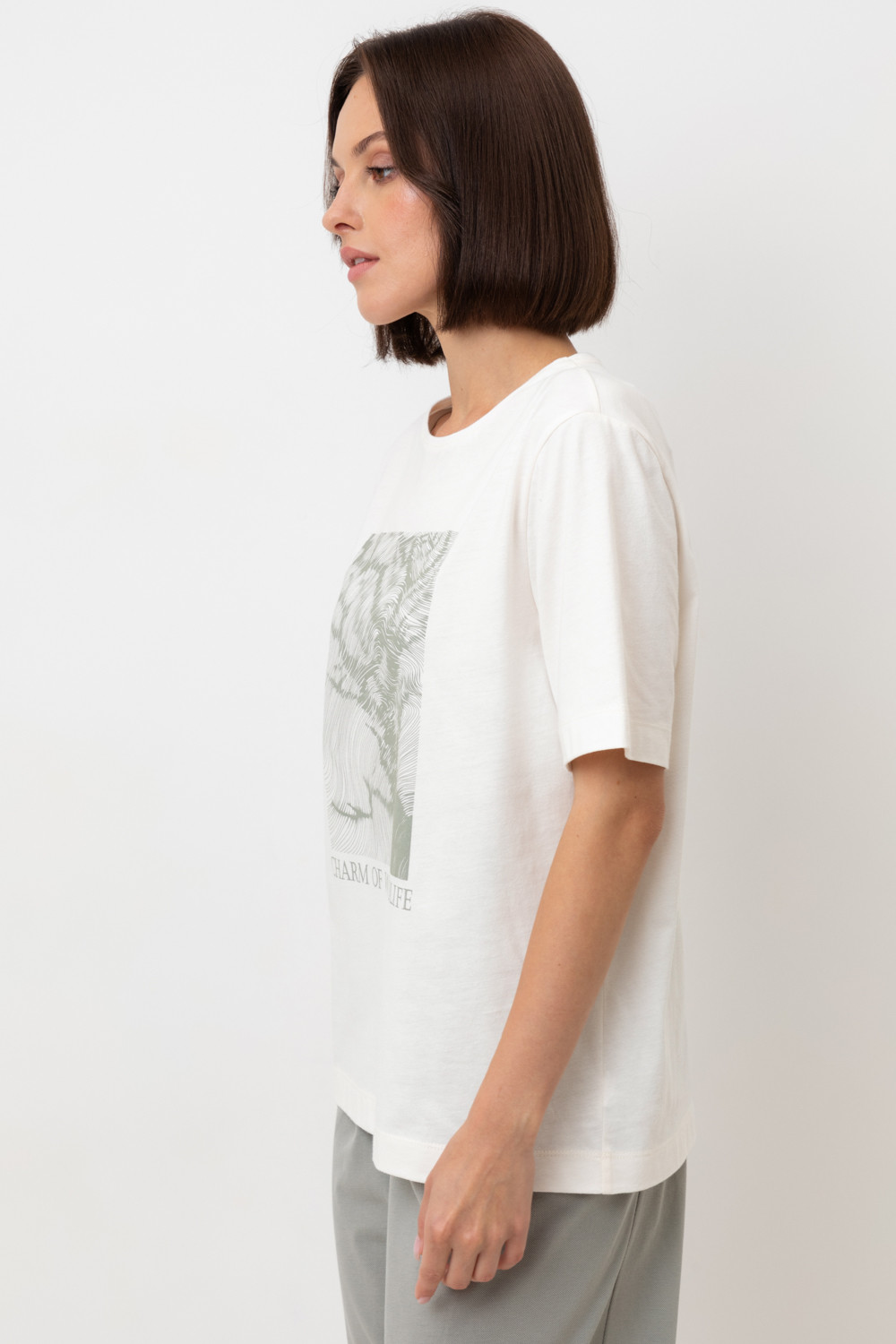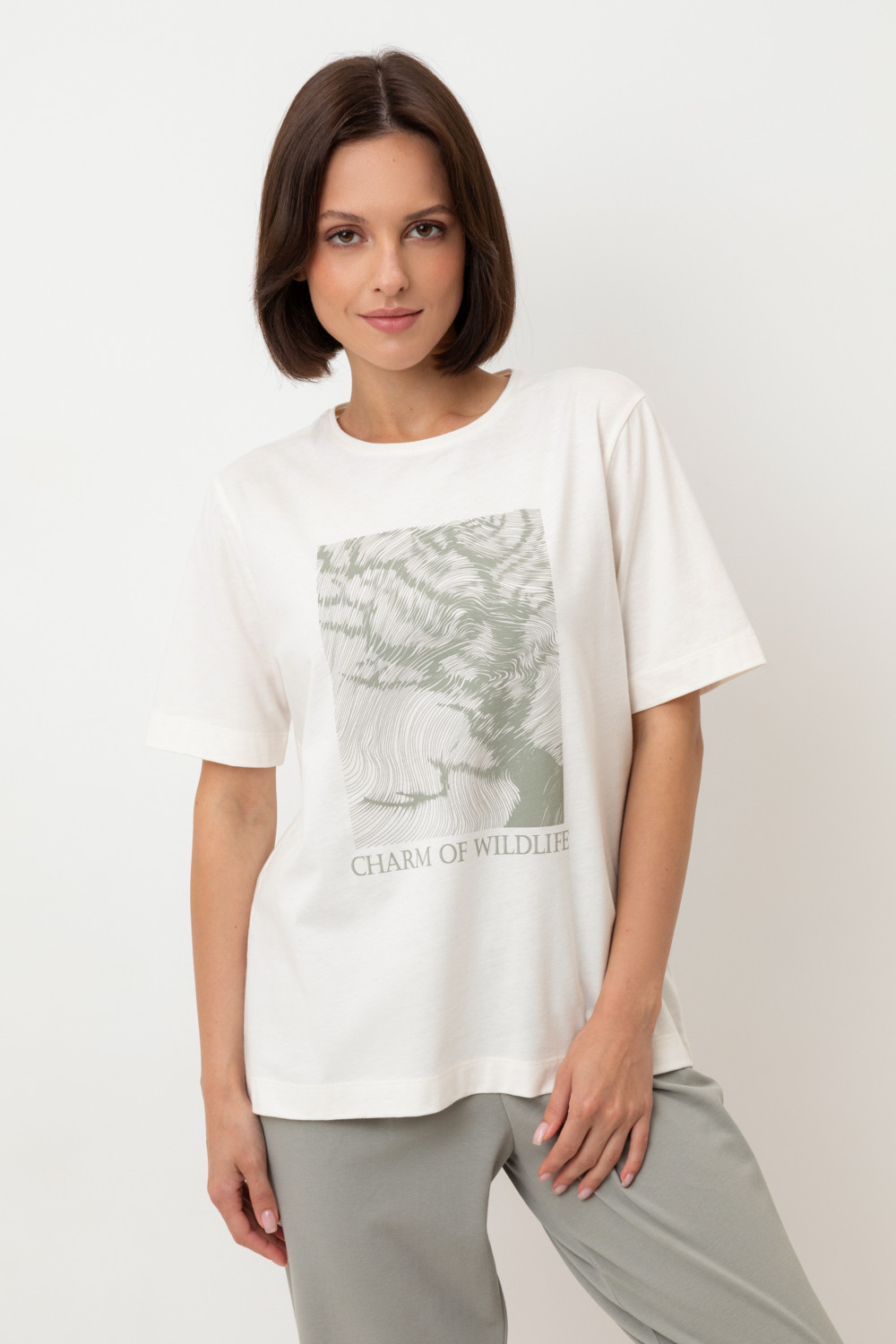 Футболка прямого силуэта из высококачественного гребенного хлопка. Мягкий на ощупь принт выполнен из водных красок, что обеспечивает устойчивость к многократным стиркам, а его дизайн добавляет летнего настроения.