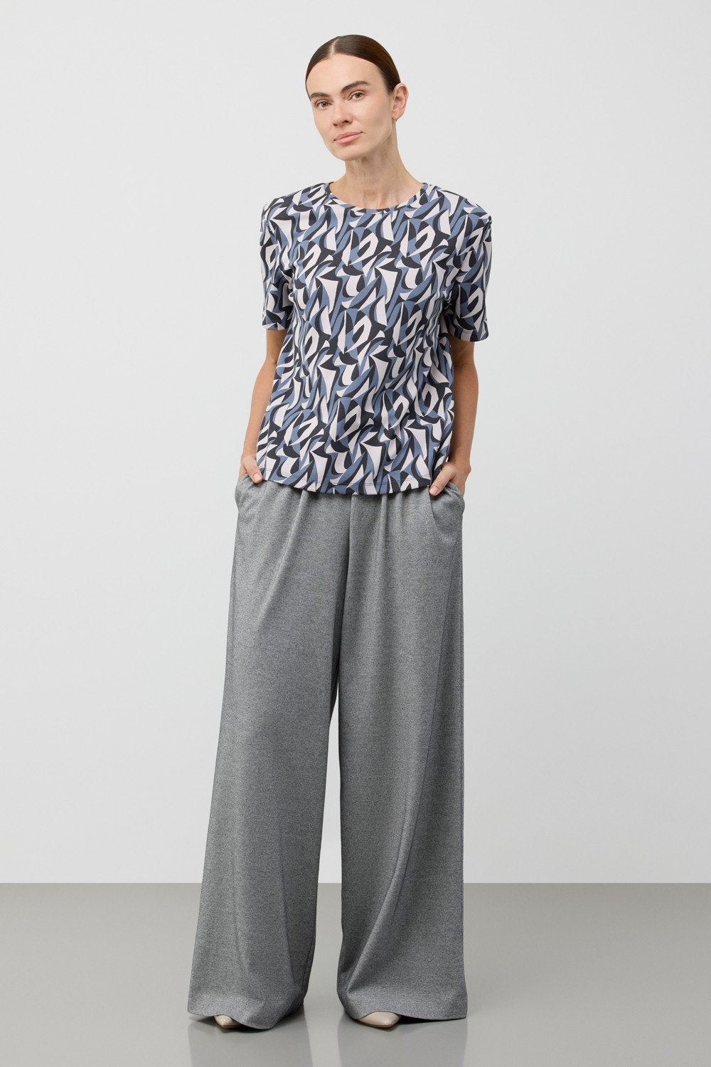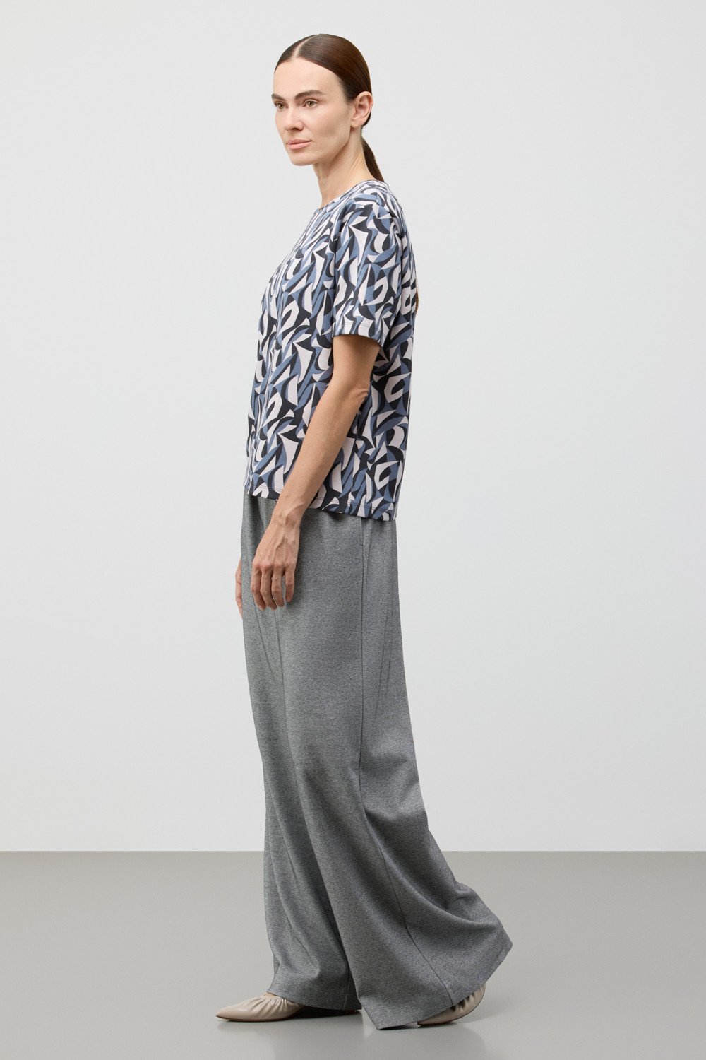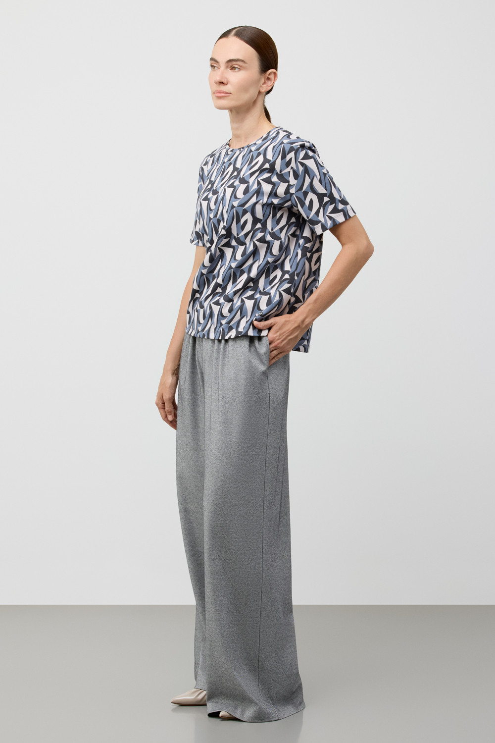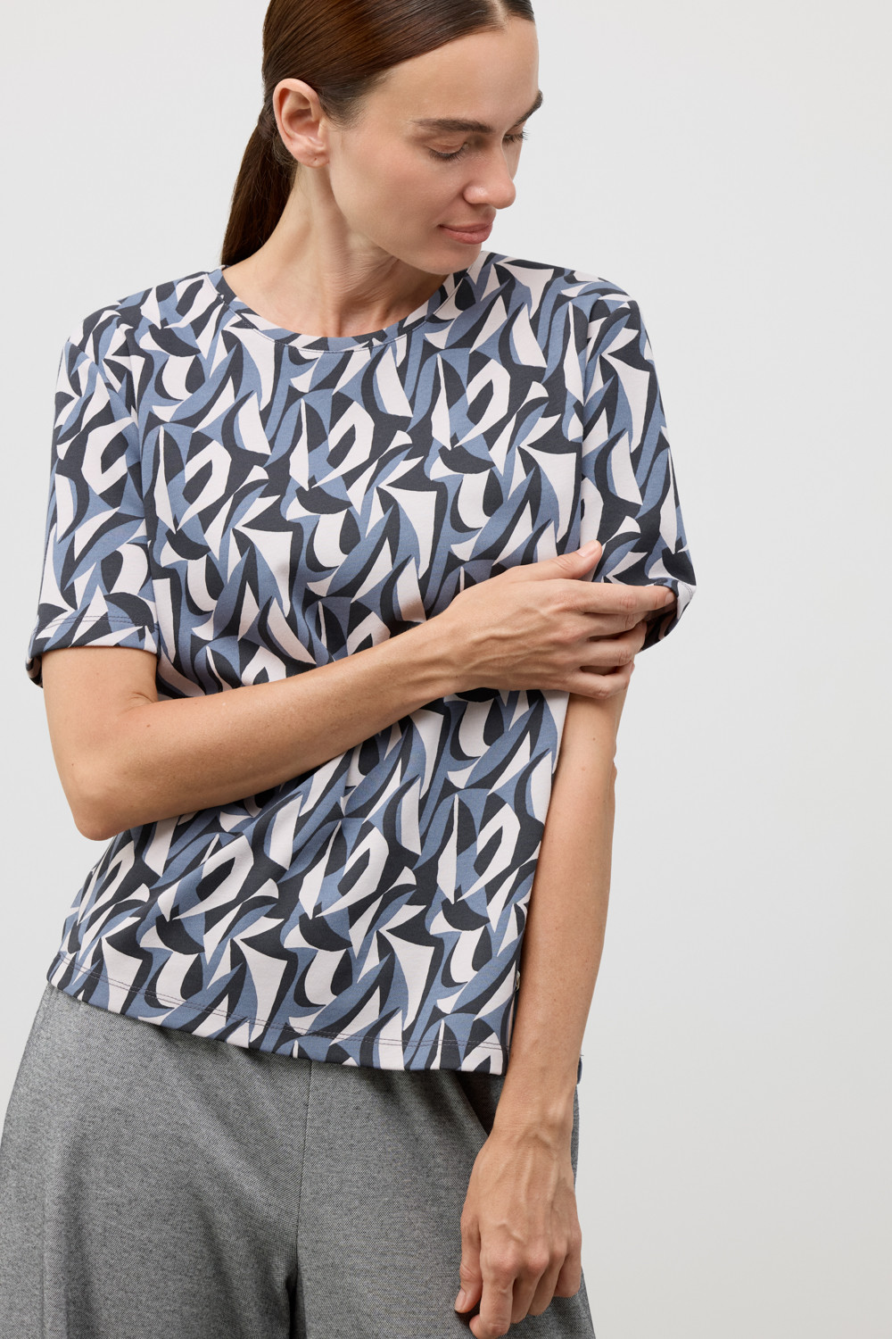 Базовая футболка из премиального трикотажа DOUBLE FACE.  Трикотаж прошел особую обработку силиконом, что придает ему легкость и шелковистость текстуры. Имеет классический круглый вырез и удобный прямой крой.