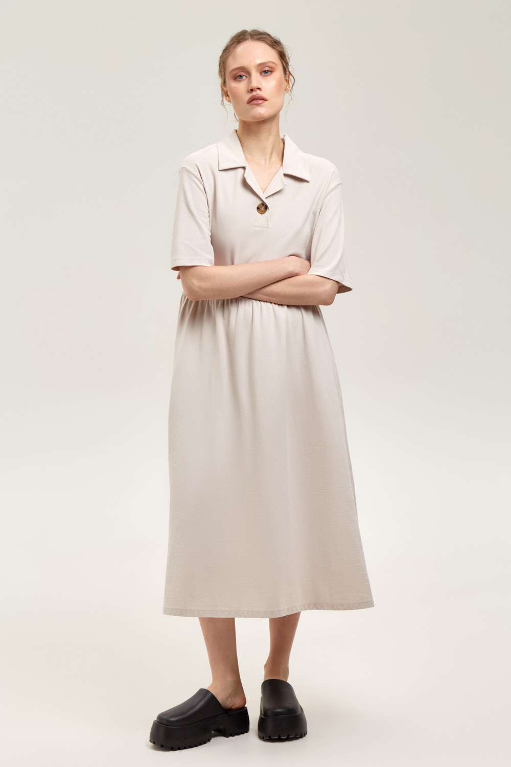 Летнее платье в стиле поло выполненное из премиального трикотажа пике. Свободный силуэт, наличие боковых карманов придают изделию спортивный и одновременно романтический стиль. 100% хлопок в составе обеспечивает комфорт в жаркую погоду.