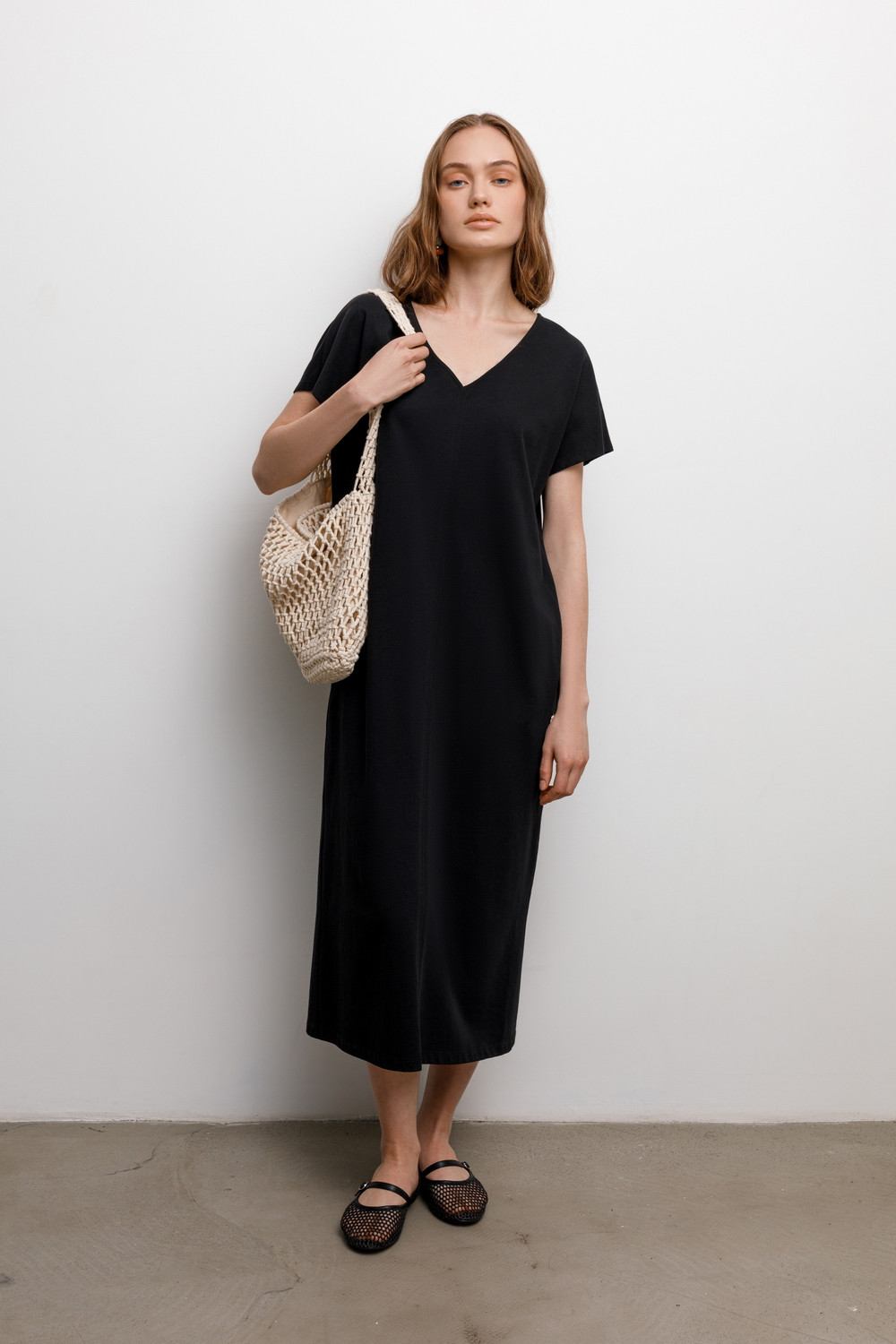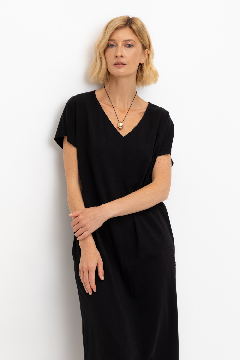 Лаконичное трикотажное платье из 100% мягкого хлопка. Наличие боковых карманов придают изделию функциональность.