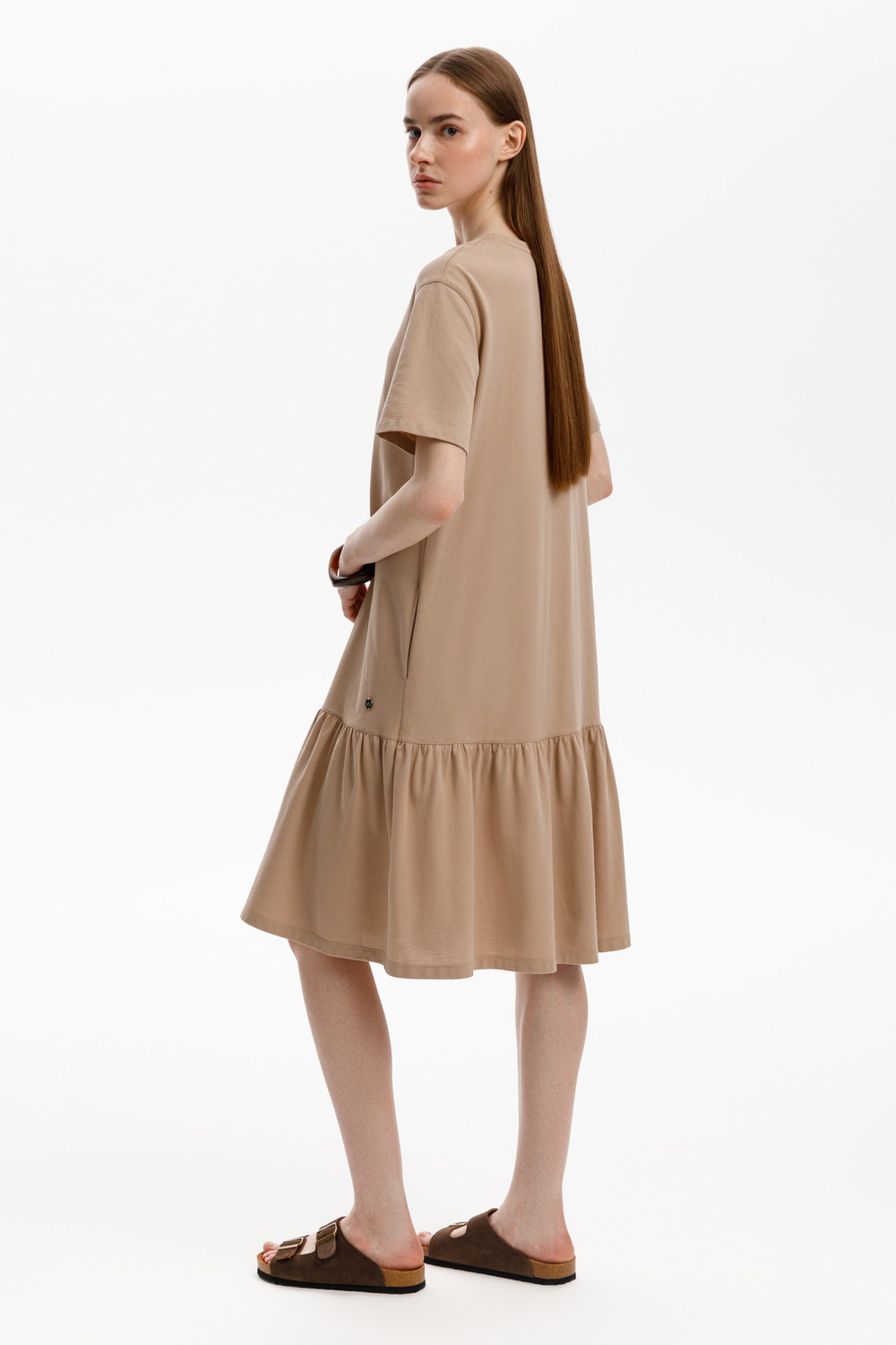 Летнее платье, изготовленное из 100% хлопка дарит невероятное ощущение комфорта и легкости. Спущенное плечо и карманы в боковых швах создают спортивный образ.