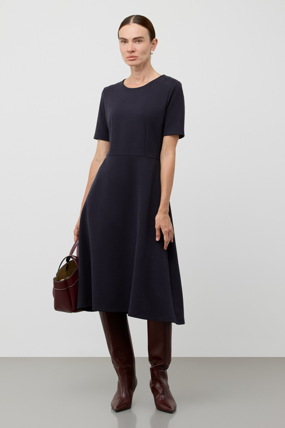 Современный фасон и лаконичный дизайн делают платье универсальным решением для различных мероприятий — от деловых встреч до непринужденных прогулок по городу.