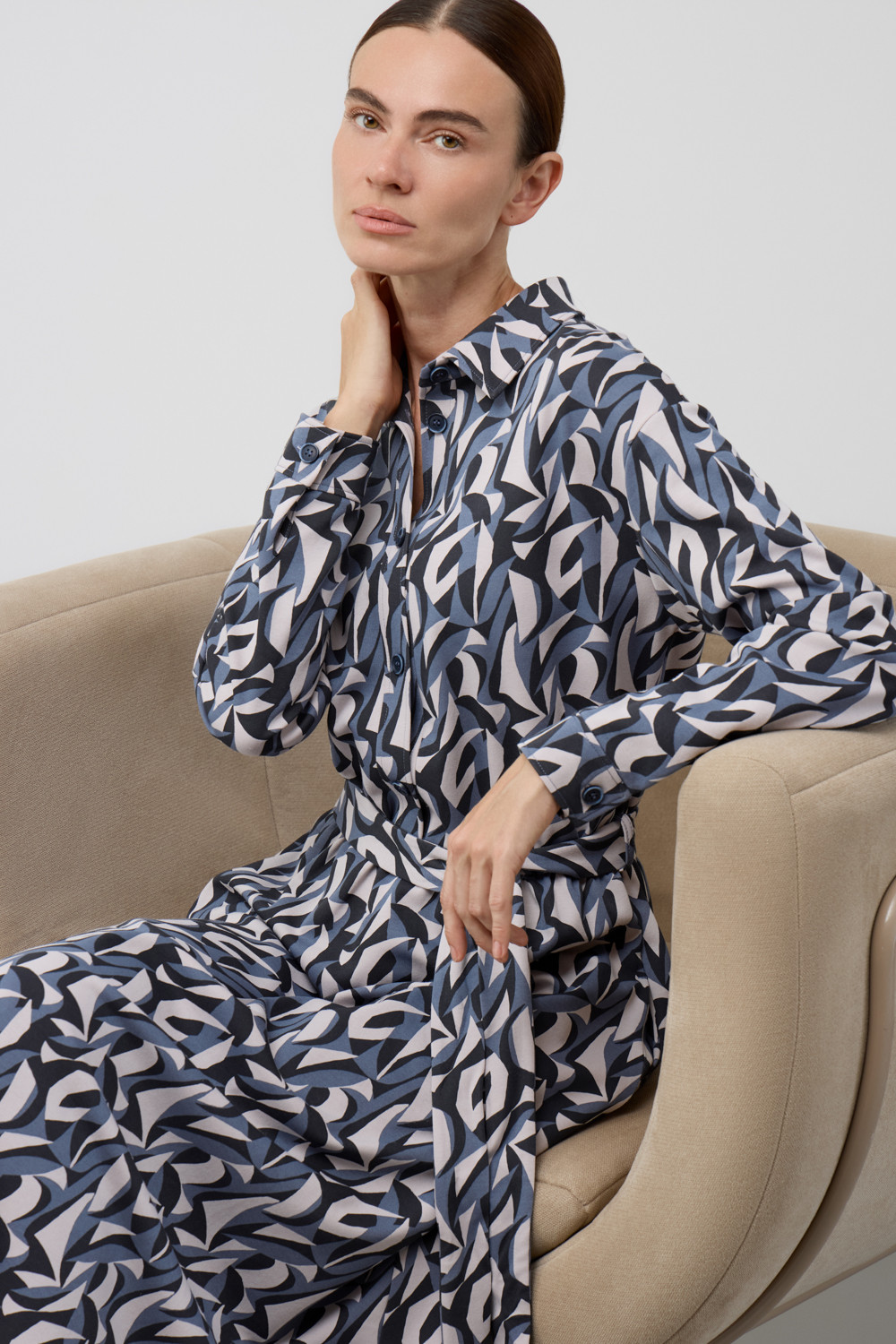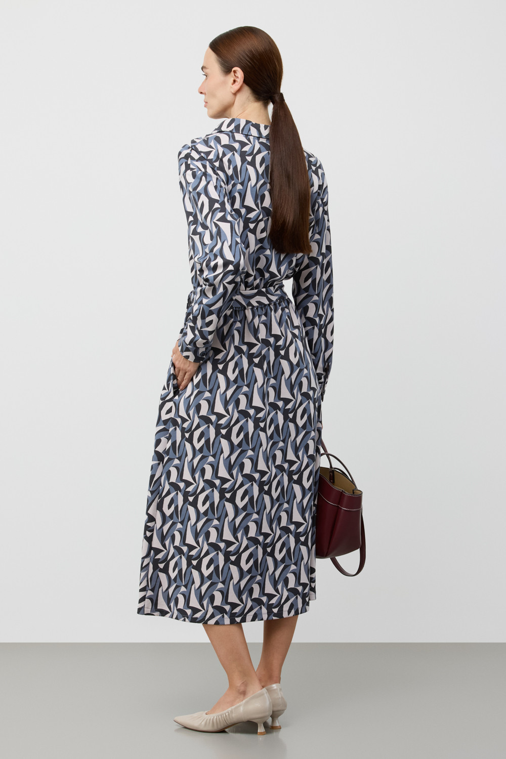 Элегантное платье с воротником-стойкой выполнено из премиального трикотажа DOUBLE FACE. Этот уникальный материал прошел специальную силиконовую обработку, благодаря чему он отличается легкостью и обладает восхитительной шелковистой текстурой. В комплекте предусмотрен пояс, который добавляет образу завершенности.