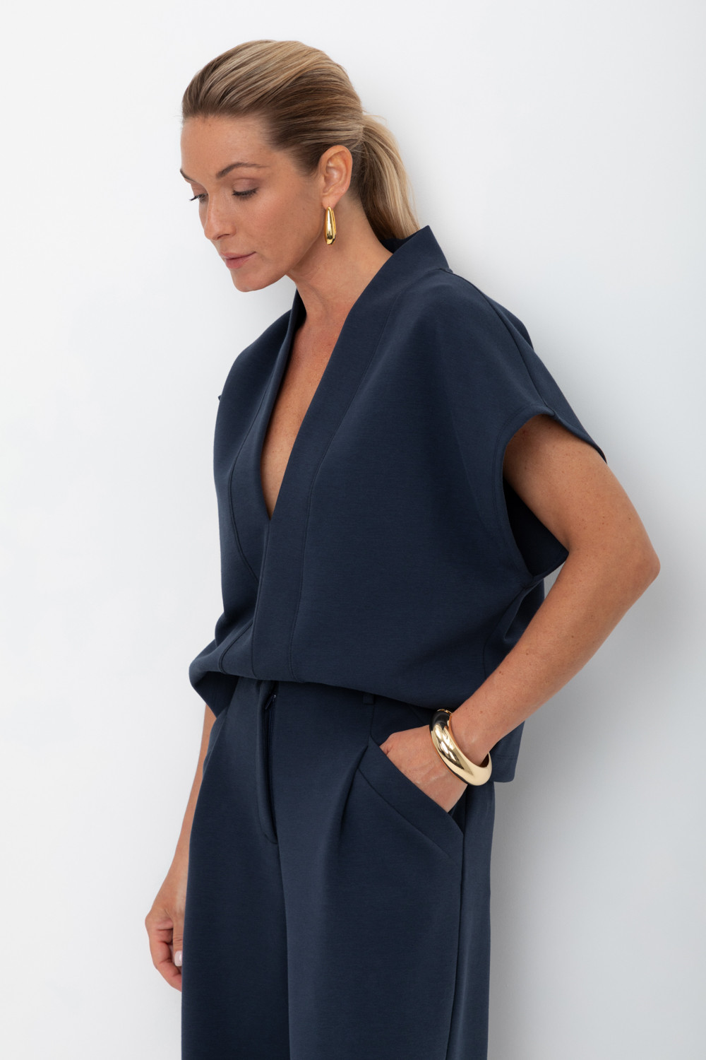 Лаконичный дизайн и мягкая текстура полотна делают жилет основой для создания многослойных образов. Удобный крой с классической линией декольте подчеркивают женственный силуэт. Жилет изготовлен из премиального трикотажа DOUBLE FACE с добавлением спандекса.