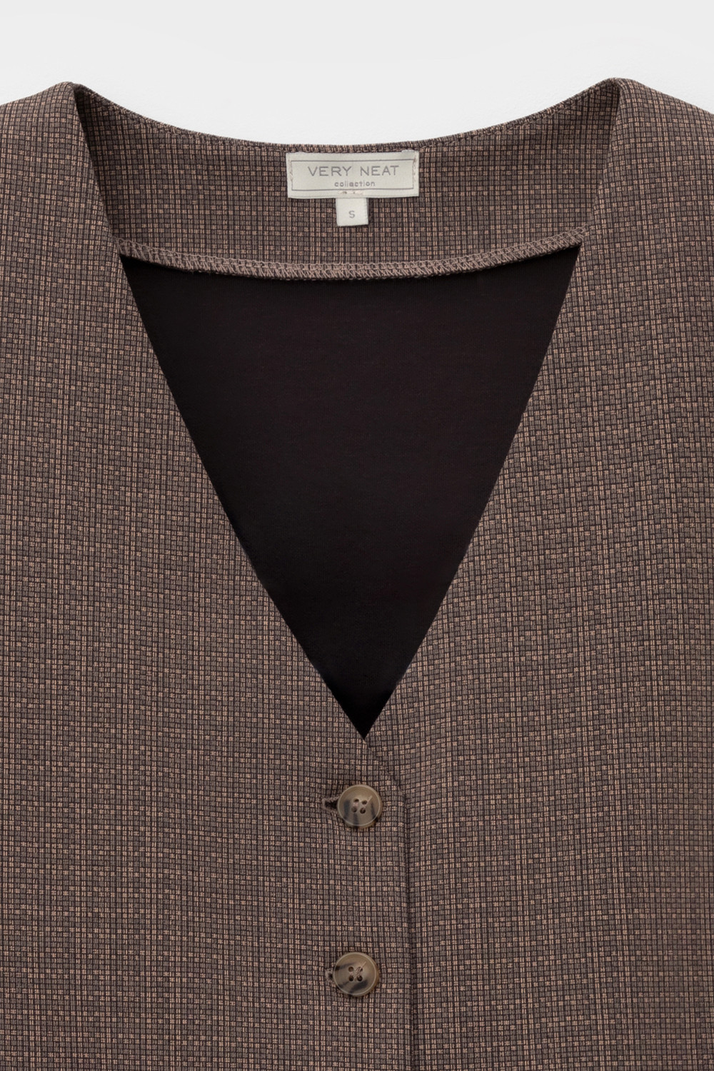 Классический жилет, изготовленый из высококачественного трикотажного полотна DOUBLE FACE. Ткань прошла инновационную силиконовую обработку. Благодаря этой технологии поверхность приобретает невероятно нежную, почти воздушную структуру с легким шелковистым блеском.