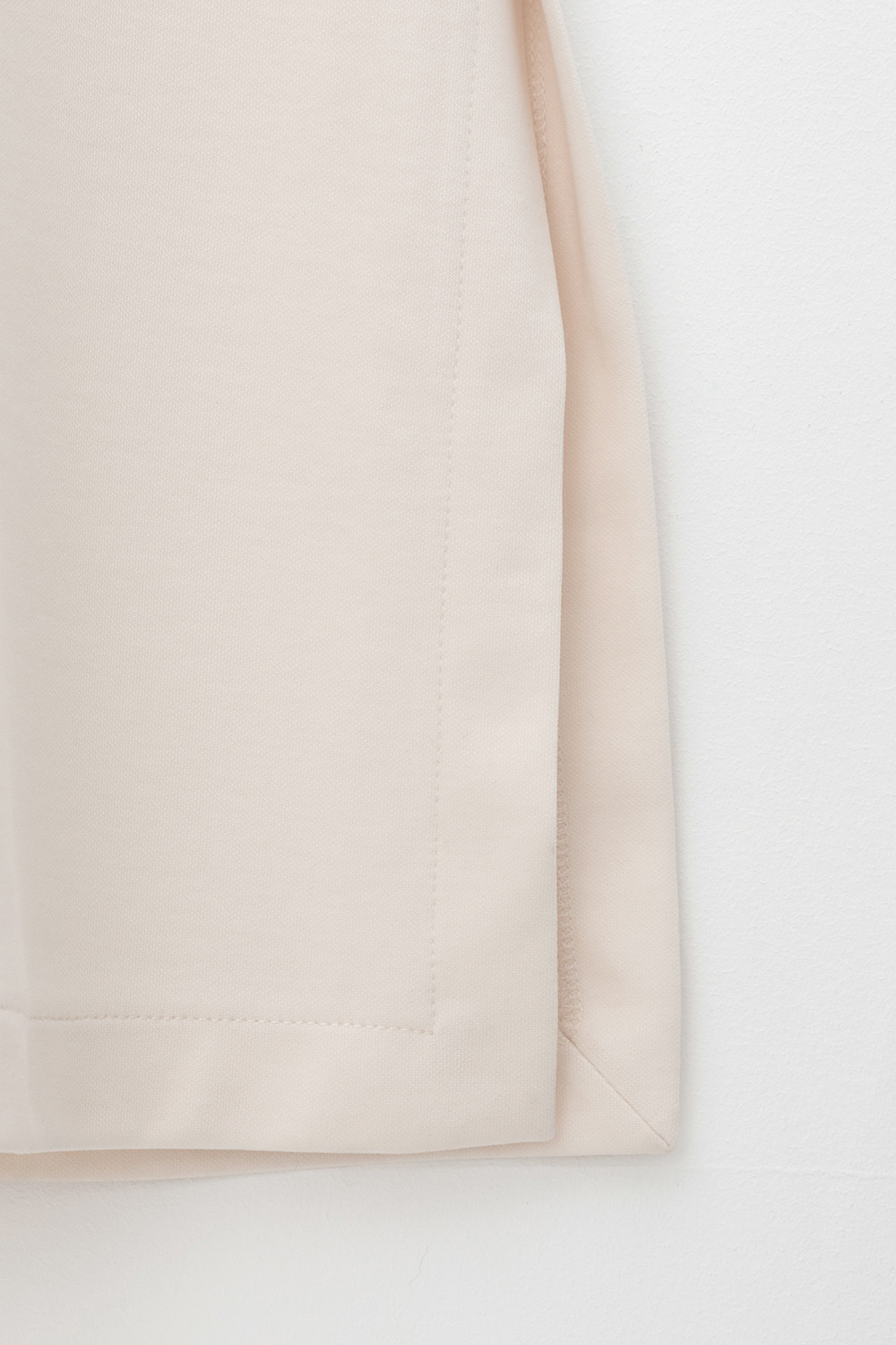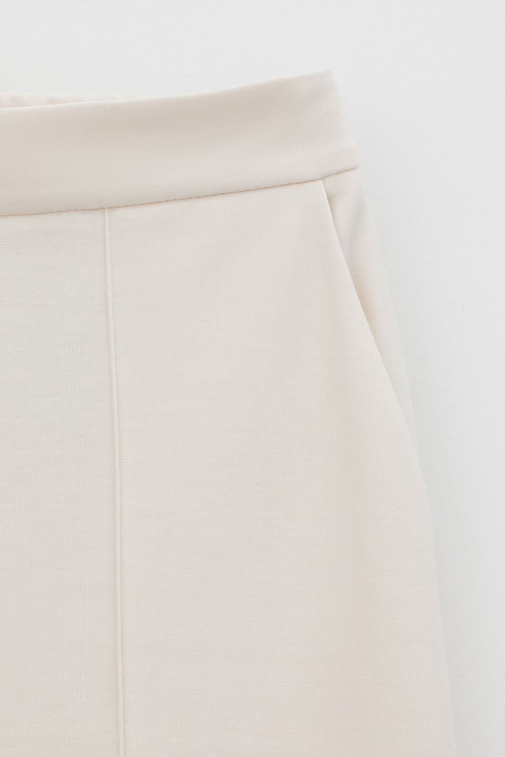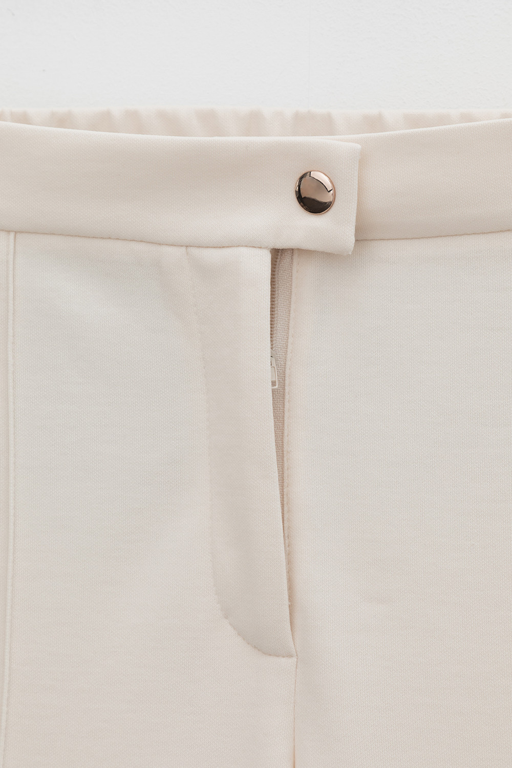 Свободные женские брюки с разрезами и боковыми карманами из плотного гладкого трикотажа интерлок. Низ обработан плоскими швами.
